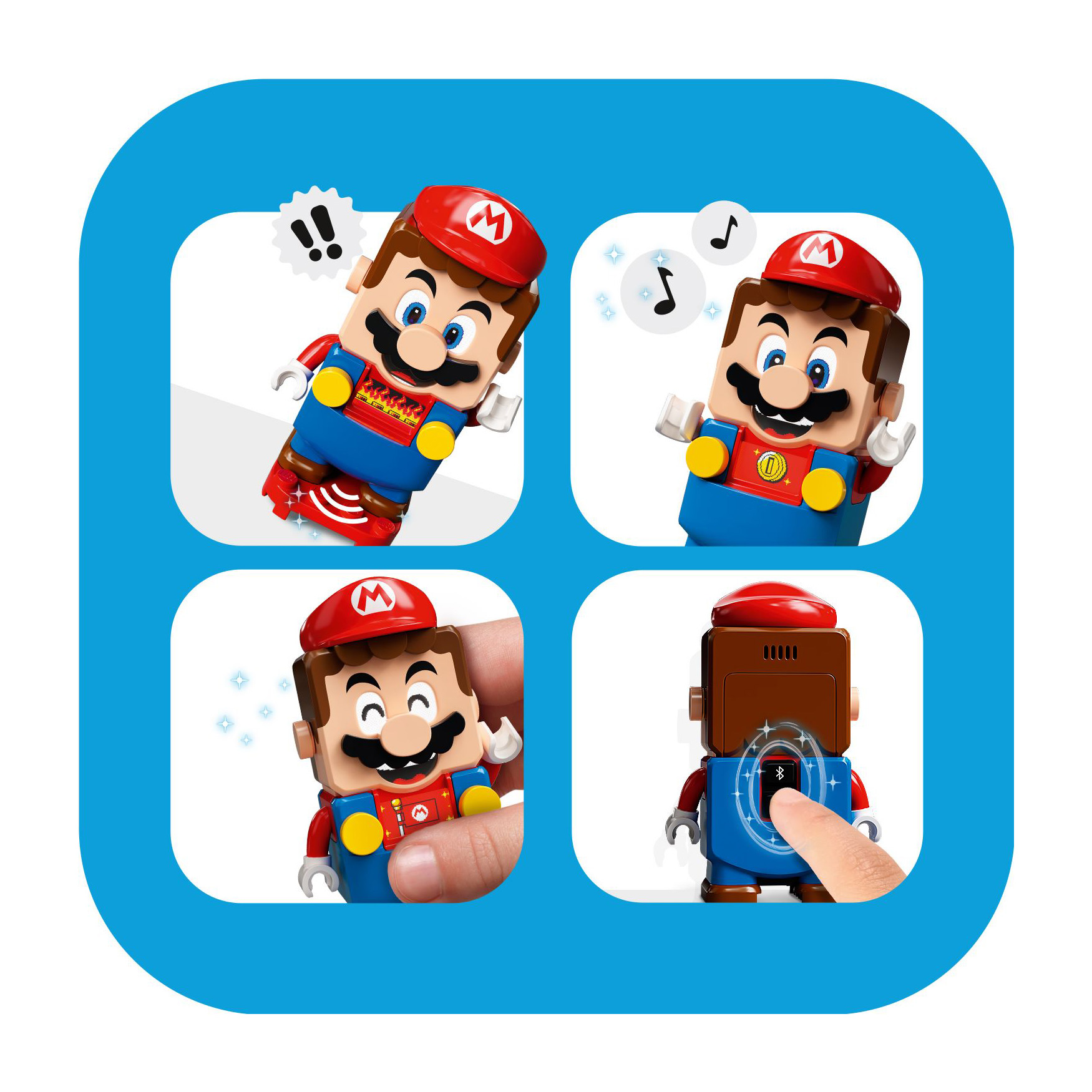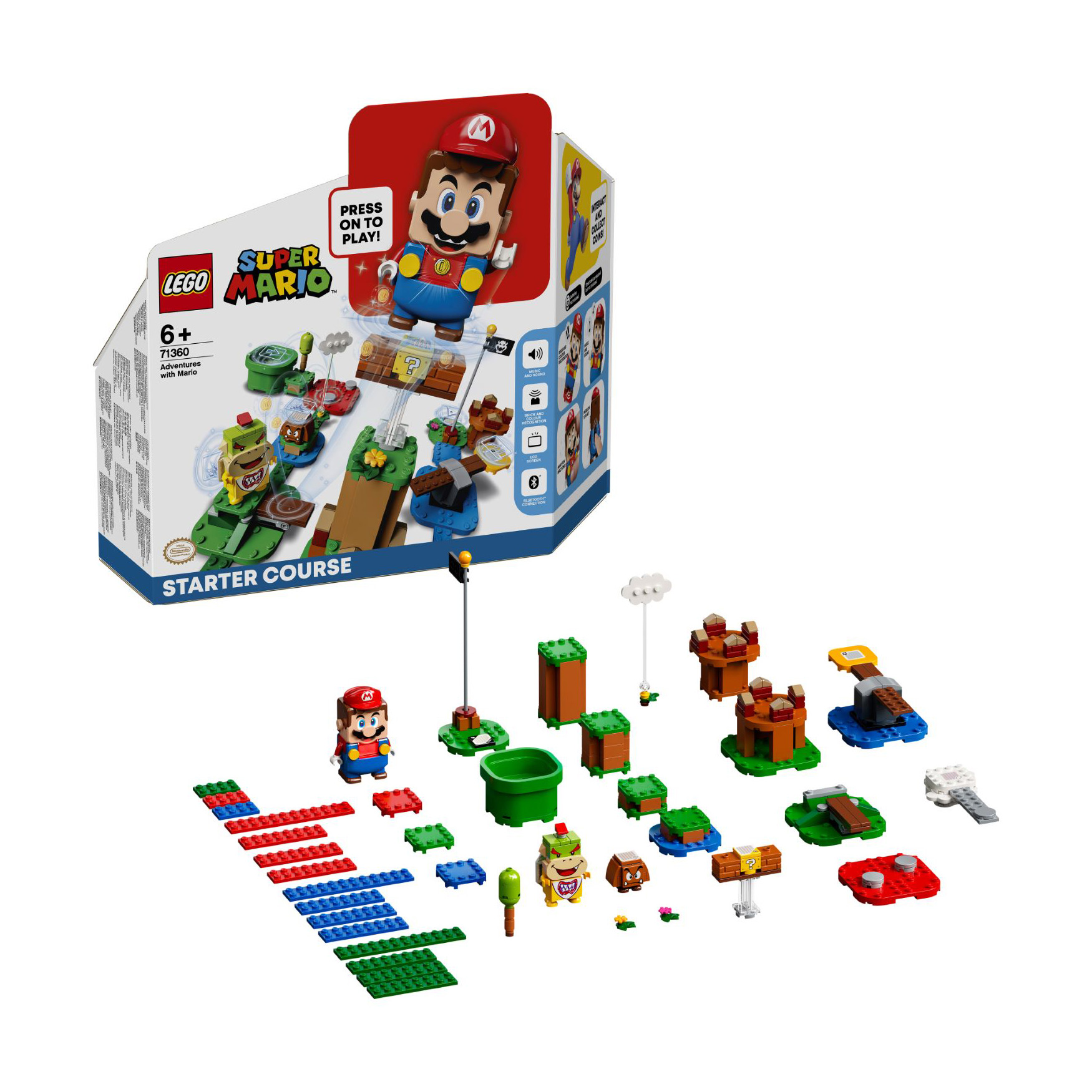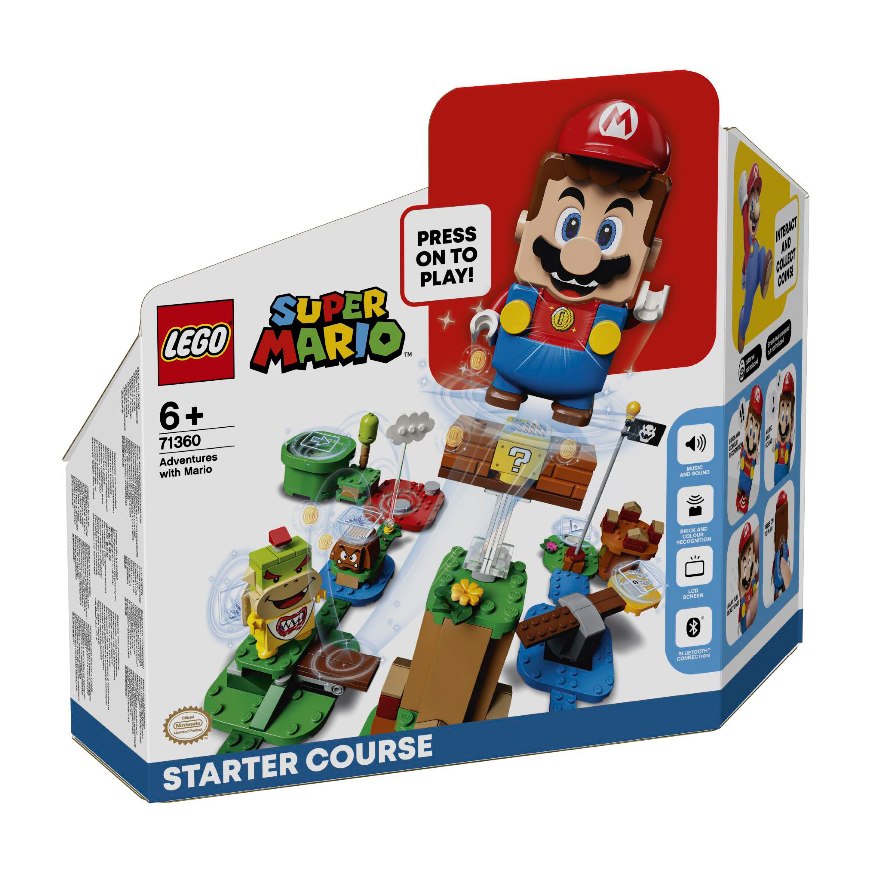 Kids can team up with their favourite character in the real world with this LEGO® Super Mario™ Adventures with Mario Starter Course (71360). The set features a LEGO Mario™ figure that gives instant expressive responses via the LCD screens and speaker. Players earn virtual coins moving LEGO Mario from the Start Pipe to the Goal Pole via spinning and cloud platforms, the ? Block, and super battles with the Goomba and Bowser Jr. toy figures. Rearrange the bricks to create new levels to master.