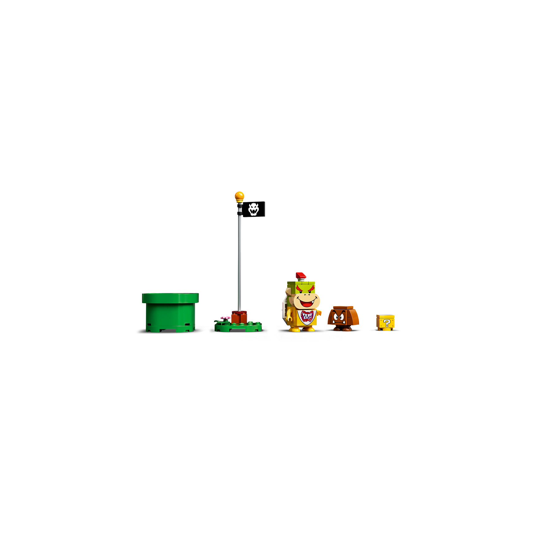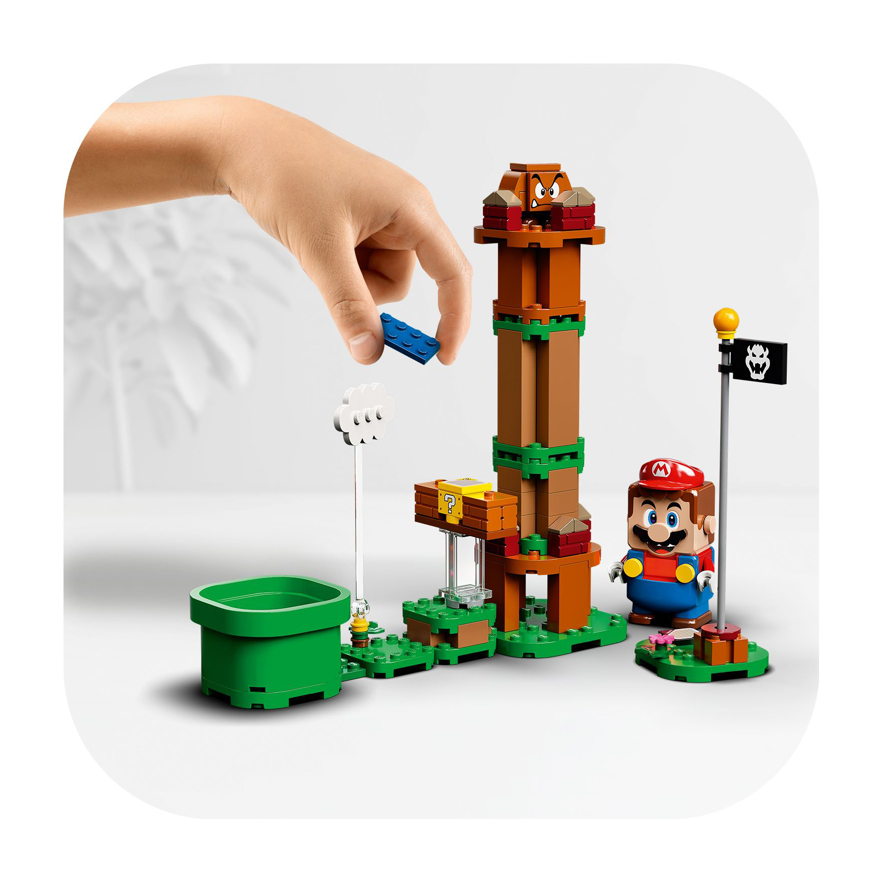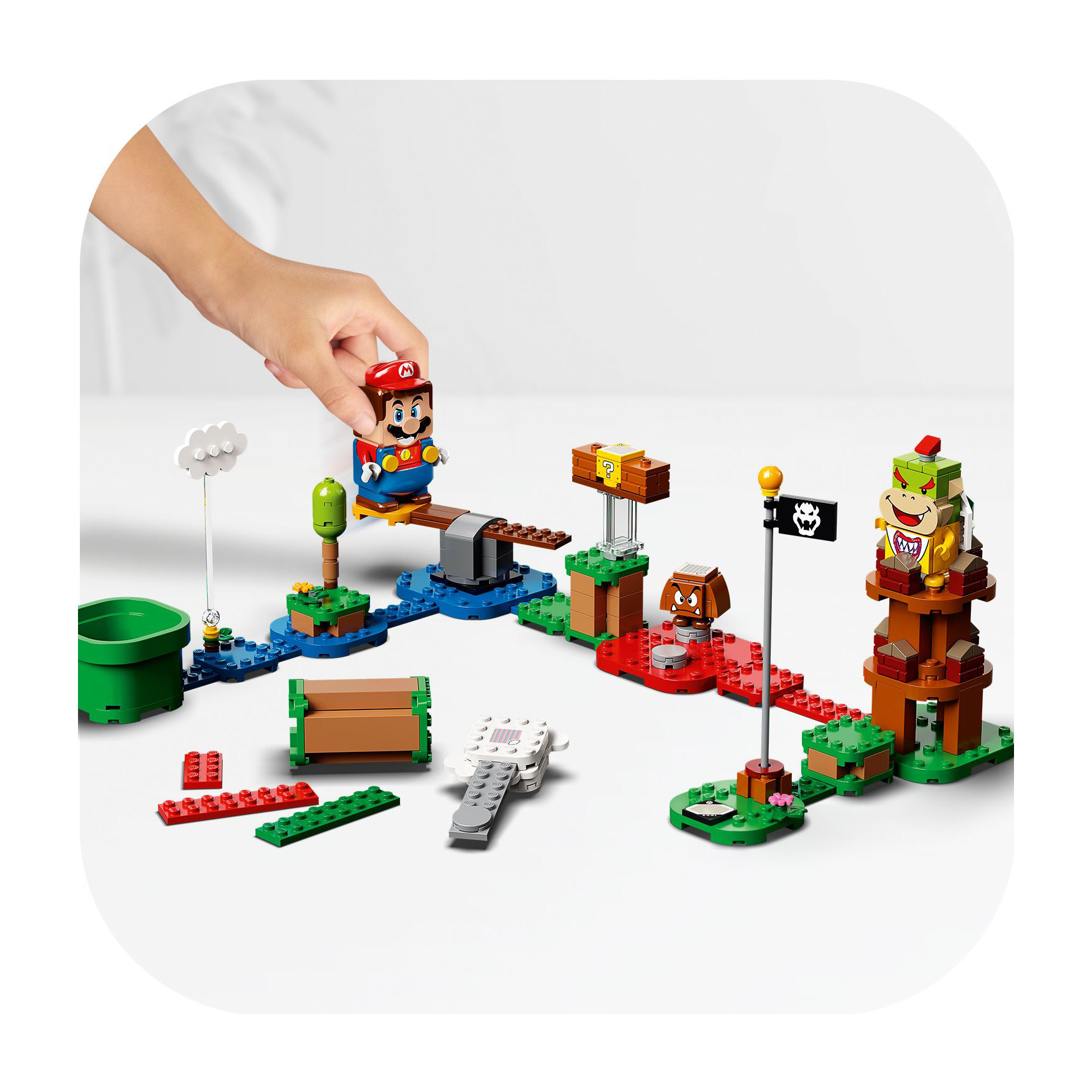 Kids can team up with their favourite character in the real world with this LEGO® Super Mario™ Adventures with Mario Starter Course (71360). The set features a LEGO Mario™ figure that gives instant expressive responses via the LCD screens and speaker. Players earn virtual coins moving LEGO Mario from the Start Pipe to the Goal Pole via spinning and cloud platforms, the ? Block, and super battles with the Goomba and Bowser Jr. toy figures. Rearrange the bricks to create new levels to master.