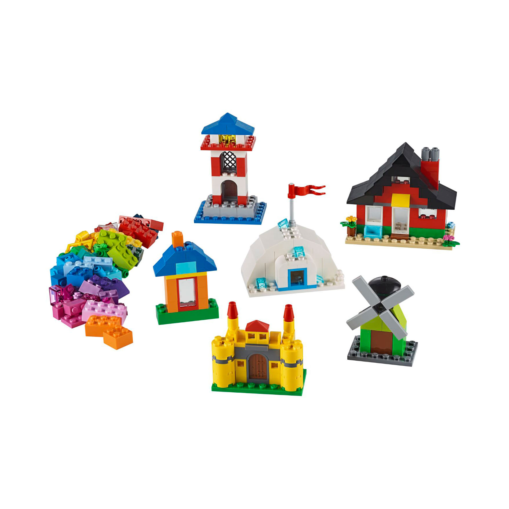 Children understand the importance of ‘home’ very early in their lives – so this LEGO® Classic Bricks and Houses set is an ideal way to introduce them to creative construction. As kids build, play and build again, they develop valuable skills that last a lifetime. Start kids building with this fun selection of LEGO houses Boys and girls aged 4 and up will love to assemble and play with these 6 easy-to-build LEGO models. There’s a family home, a lighthouse, an igloo, a castle, a small house and a windmill to build. Simple instructions and cool features, such as turning sails on the windmill, make construction fast and fun. After making the models, there are even more bricks and pieces left for kids to create a dream home of their own. Develop key skills with LEGO Classic building toys LEGO Classic sets put ideas and inspiration into kids’ hands. Fun models and simple guides get them started. As they discover the joy of constructing creations of their own, they acquire skills that are key to future success.