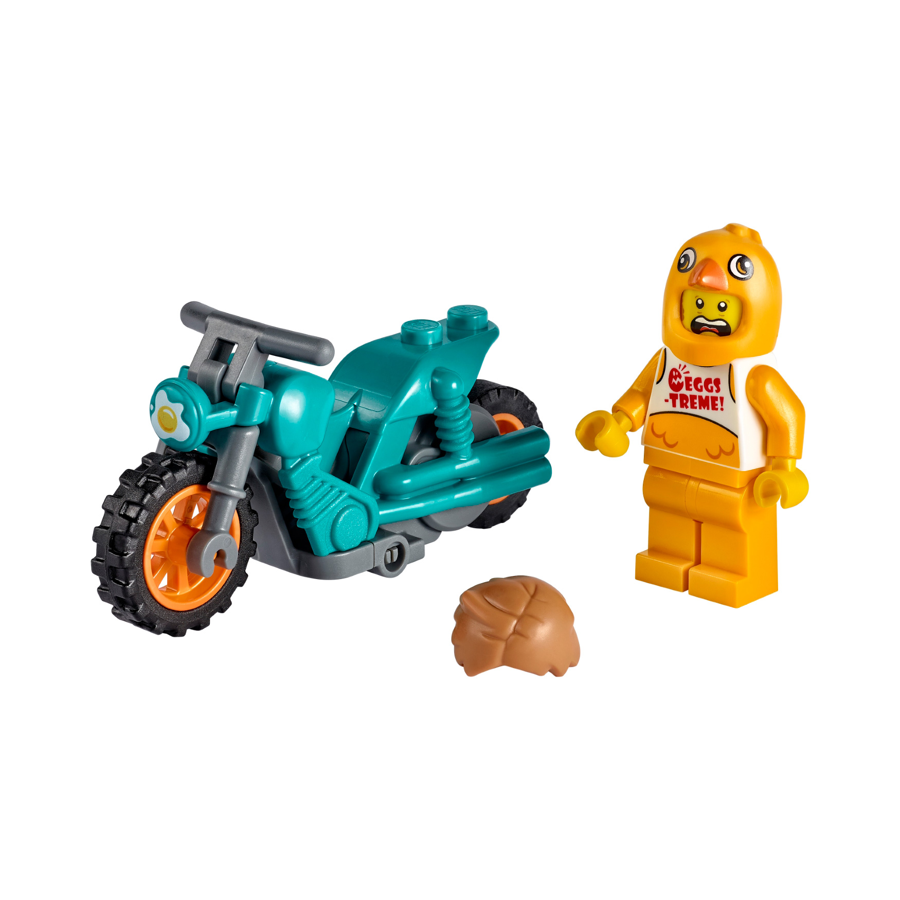 This action-packed flywheel-powered LEGO® City Chicken Stunt Bike (60310) playset comes with an amazing toy motorcycle for performing cool wheelies and high-flying stunts. Just add the LEGO City Adventures TV series character Clemmons, dressed in his chicken outfit, for hilarious stunt-show adventures.