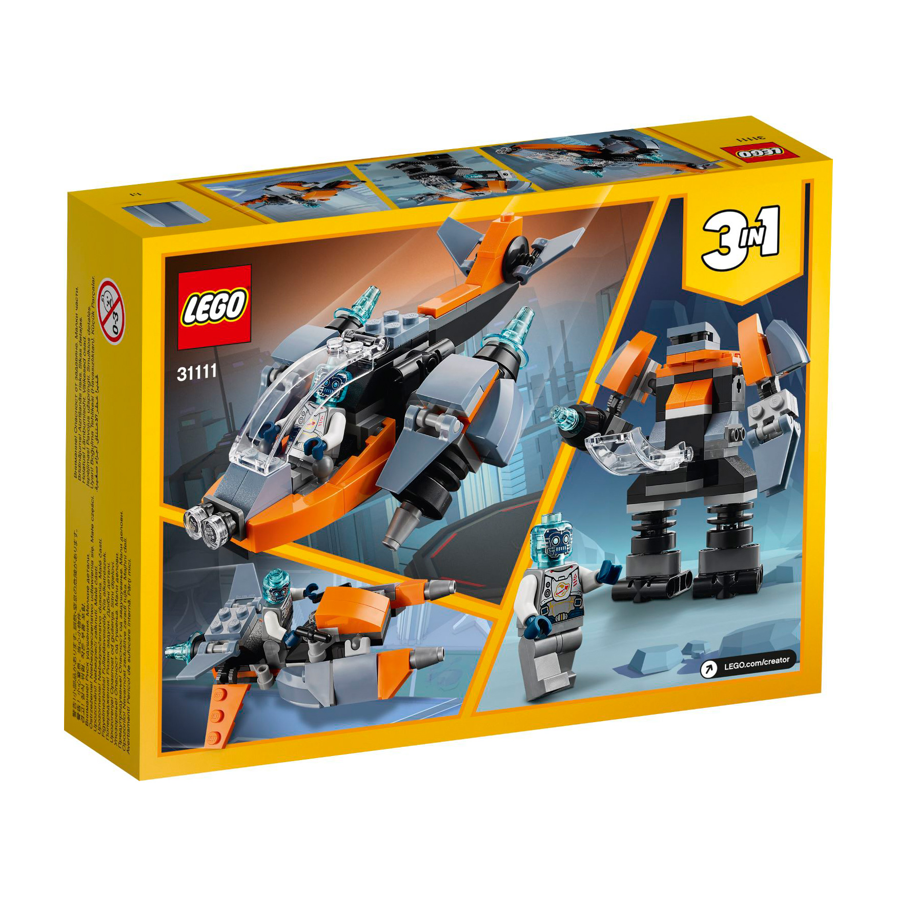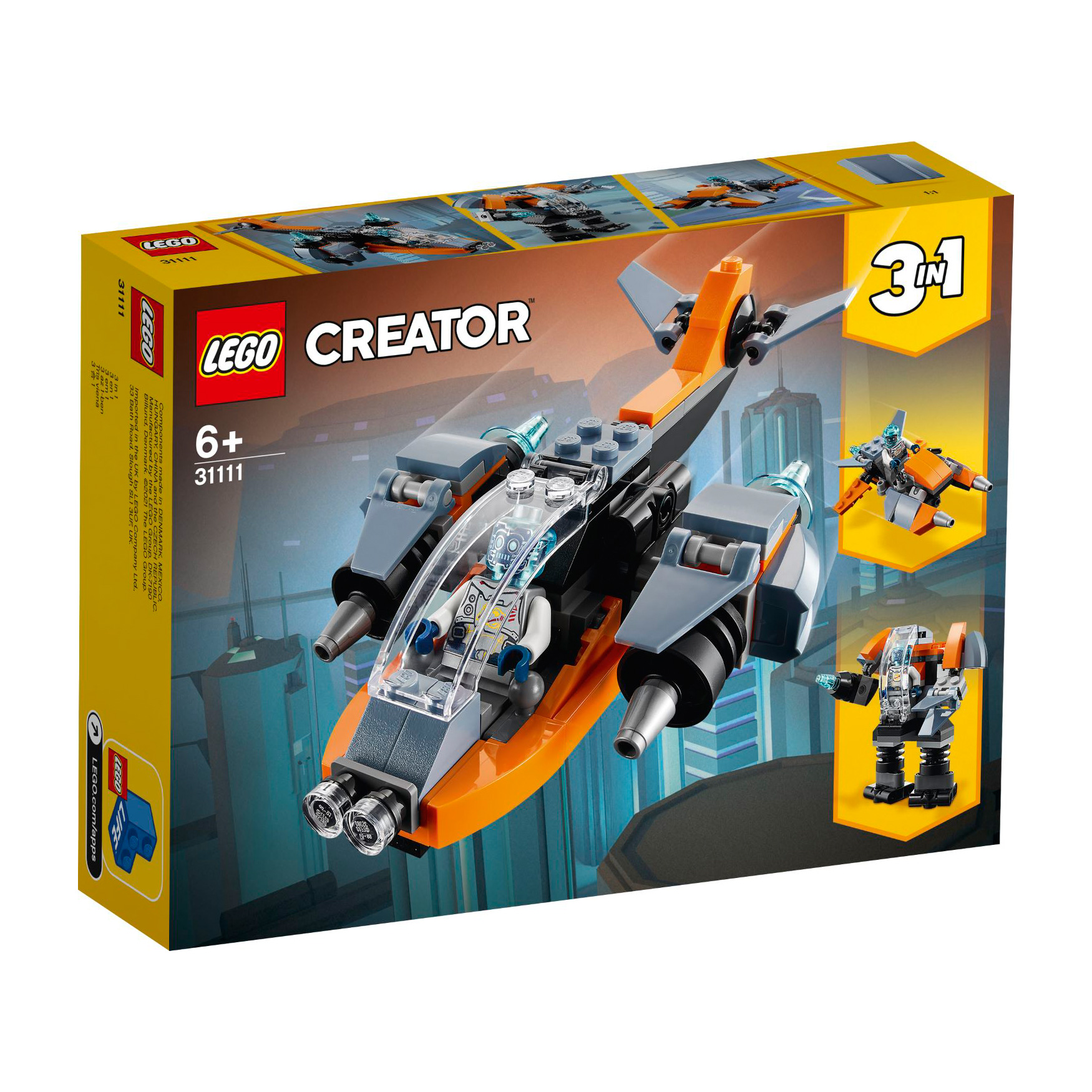 Get kids playing out action-packed adventures in space with this cool LEGO® Creator 3in1 Cyber Drone (31111) toy set. It features 2 rotating adjustable thrusters, posable elevators on the tail and a cockpit with an opening windshield, inspiring kids to enjoy hours of fun role play.