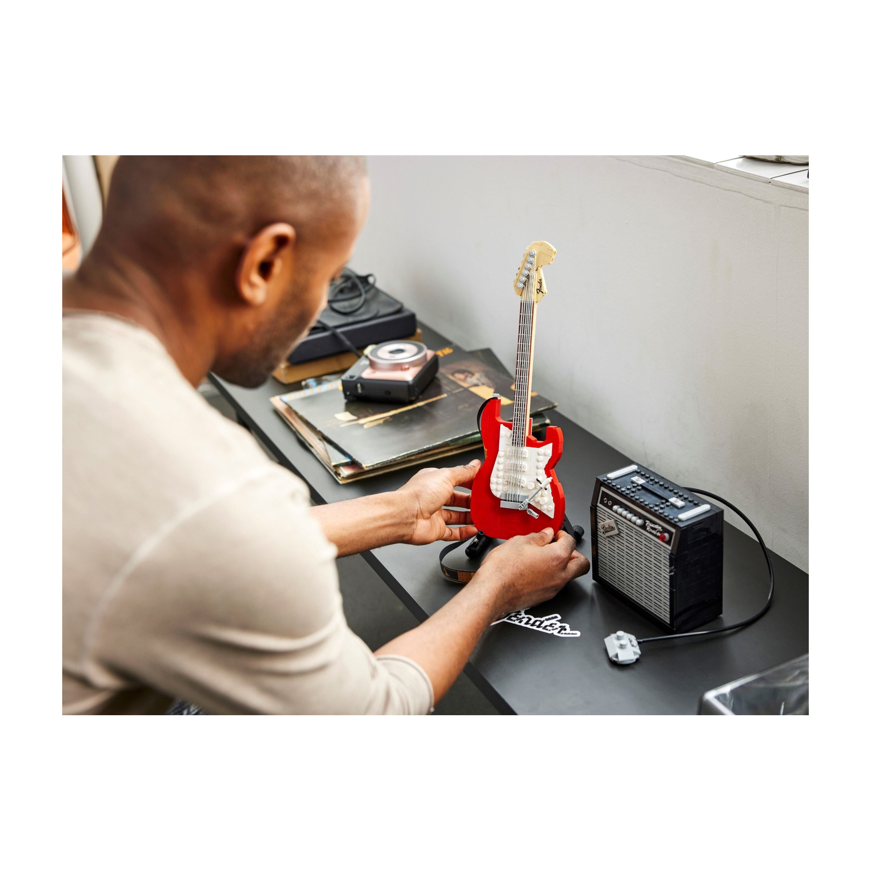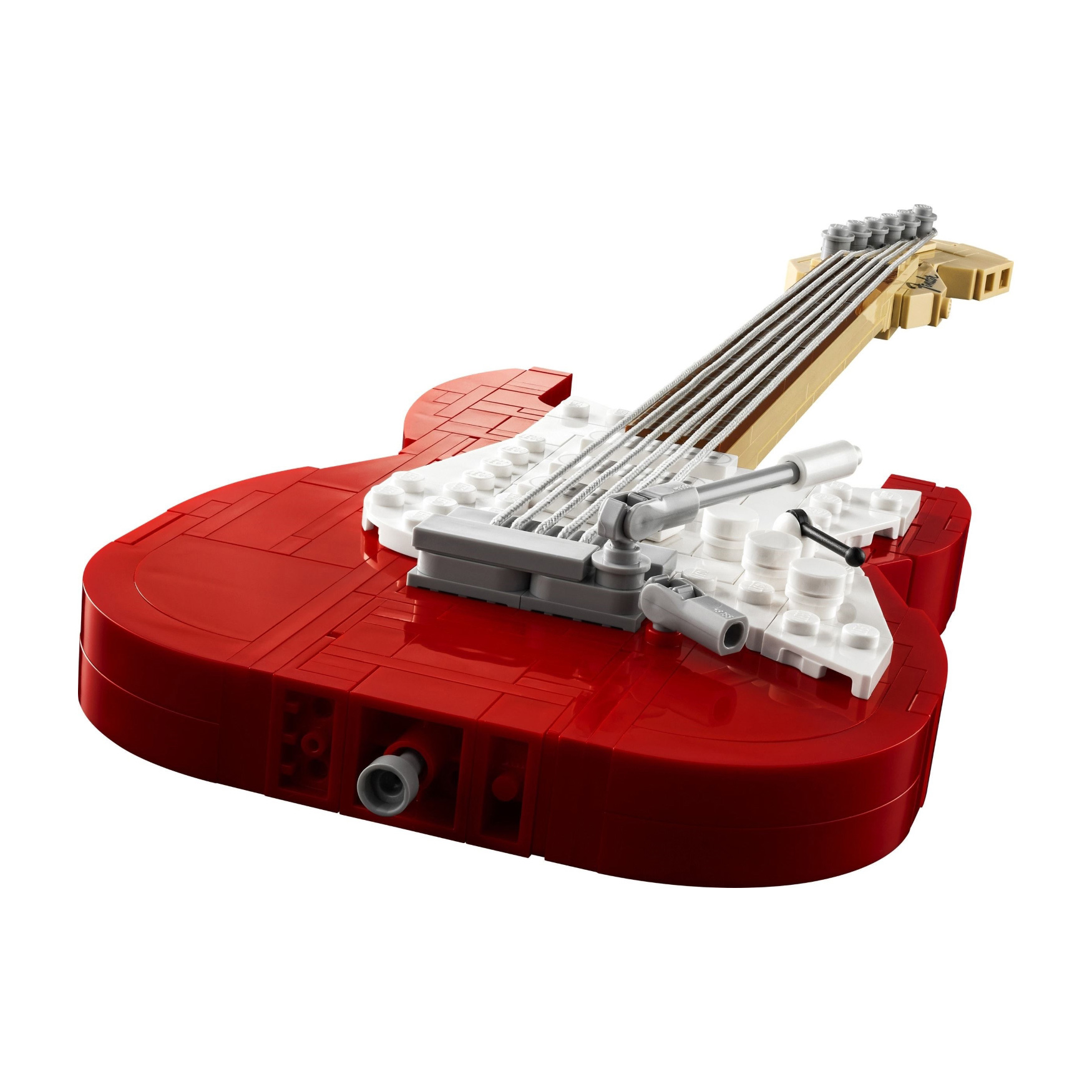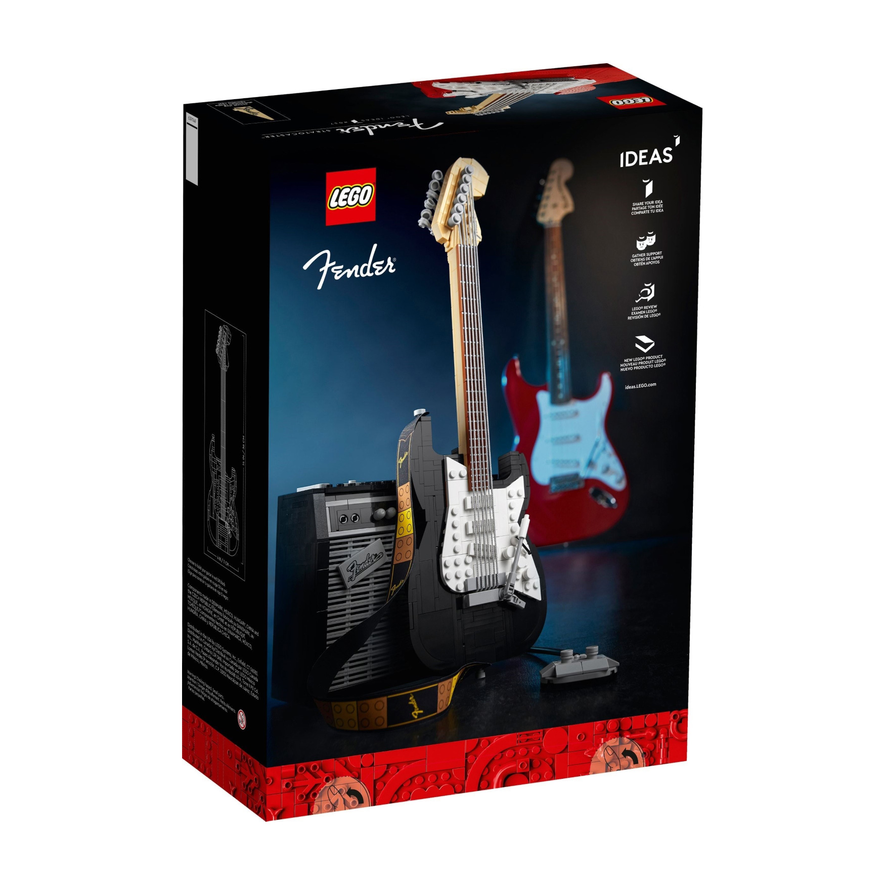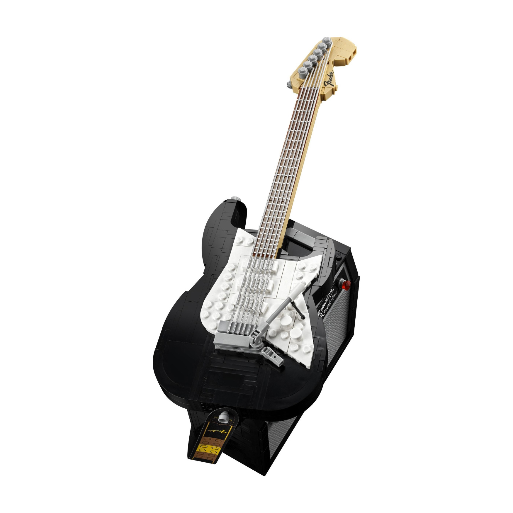 Build a 1970s Fender® Stratocaster™ and a 65 Princeton® Reverb with this LEGO® Ideas set (21329). Remember legendary musicians who played on a Stratocaster® as you recreate the legendary curves and add authentic details like the movable tremolo lever, pickup switch, and mechanics. Removable side walls provide a view of the tubes, the reverb spiral, the loudspeaker and other details in the amplifier. Rubber cables connect the amplifier to the guitar and foot switch.