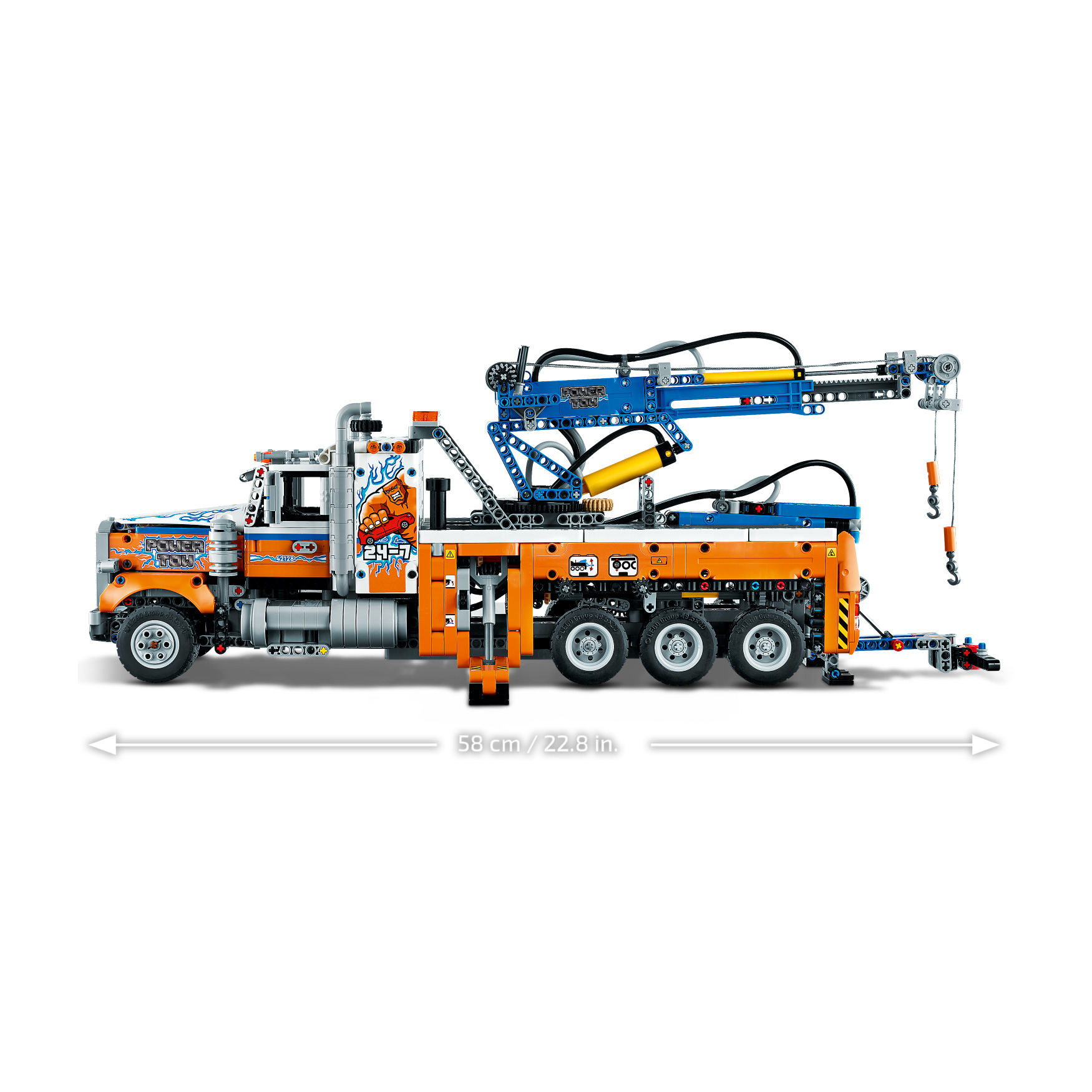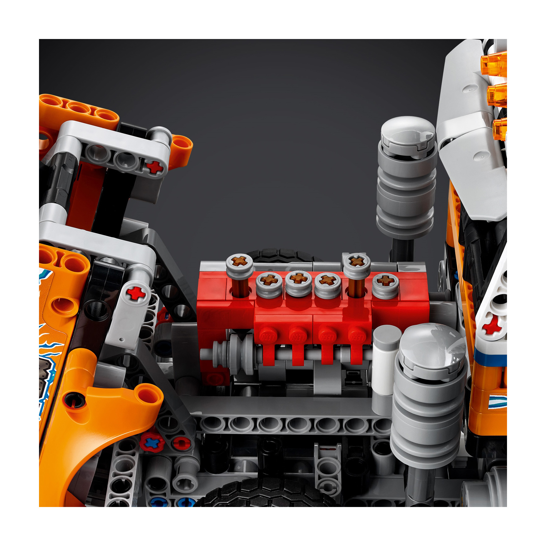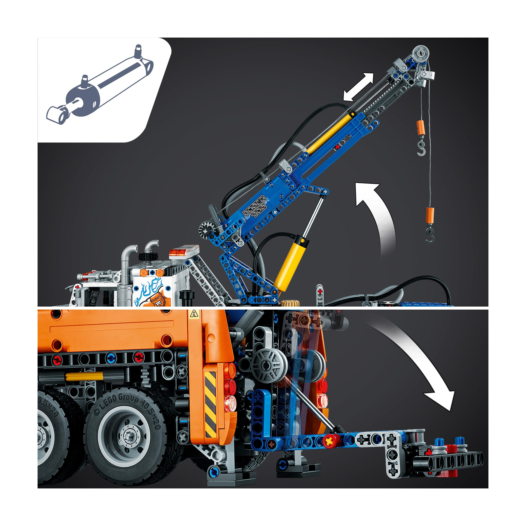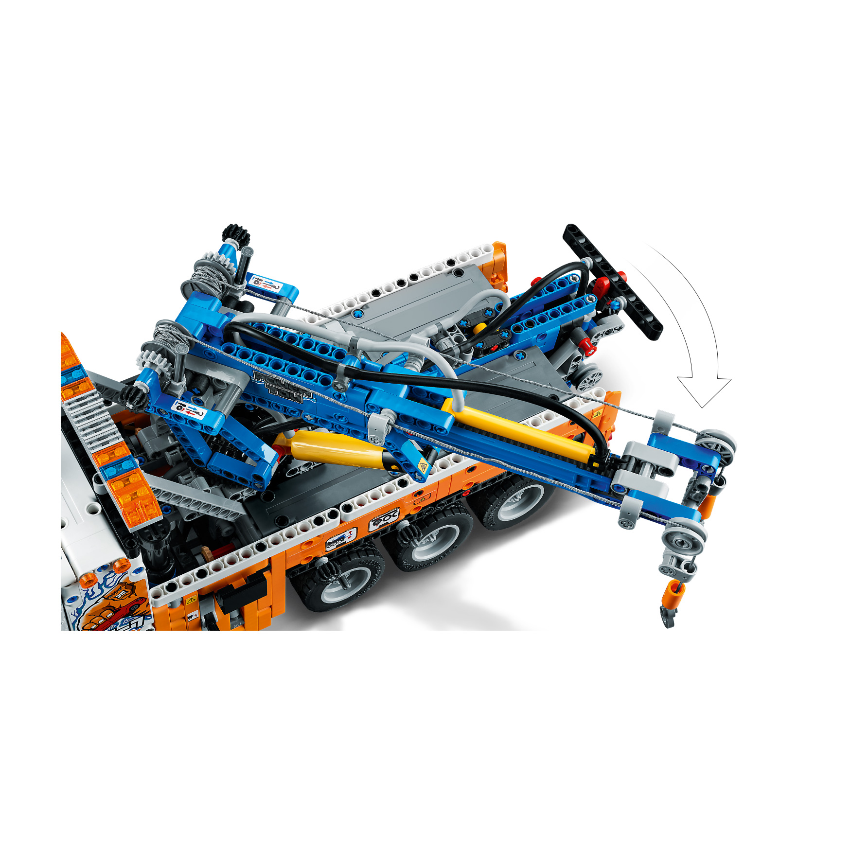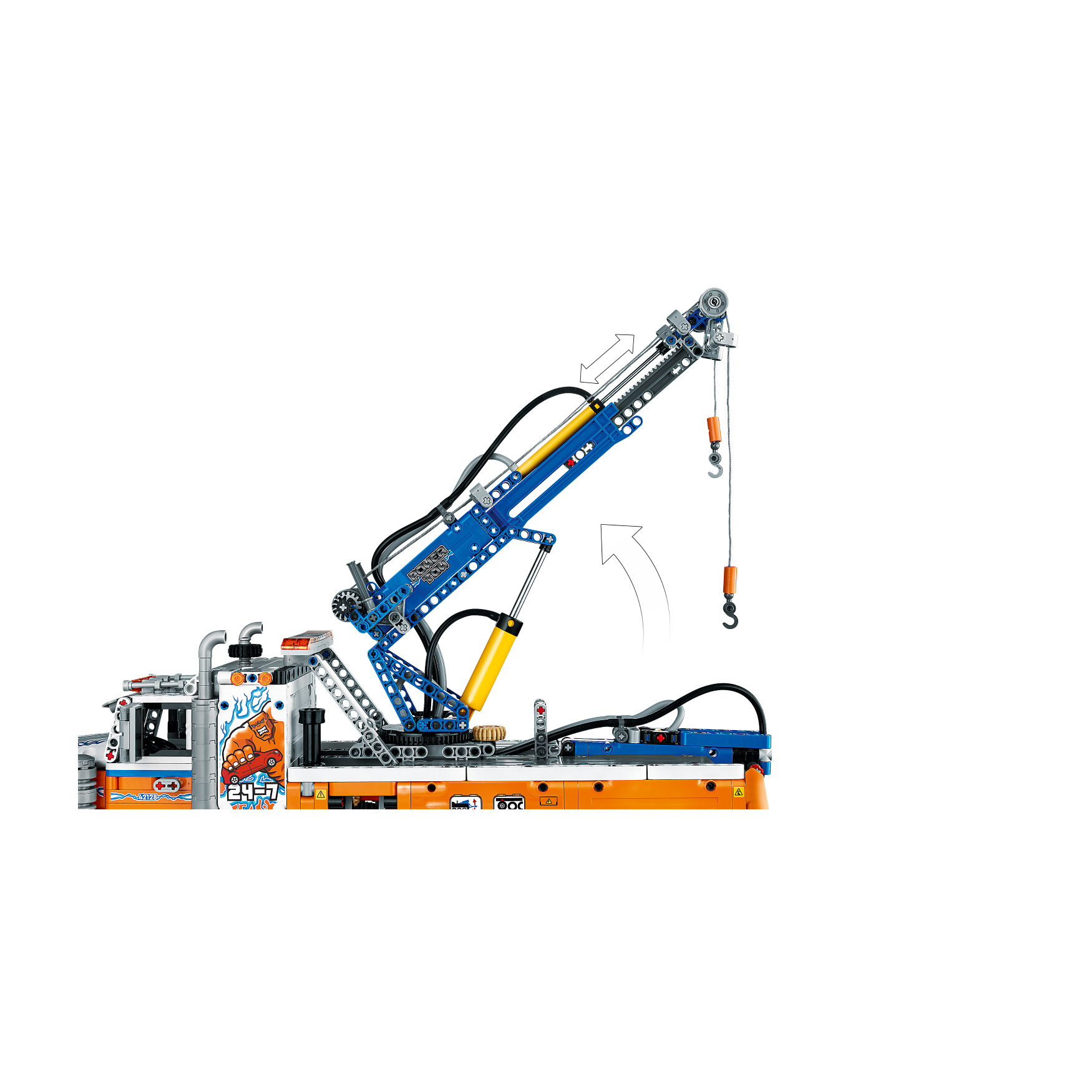 The LEGO® Technic heavy-duty tow truck helps any vehicle that is left stranded. Take your time as you build this massive truck. Then check out all the great features and classic design details. The realistic pneumatic and mechanical functions let you experience how much power this classic tow truck has.