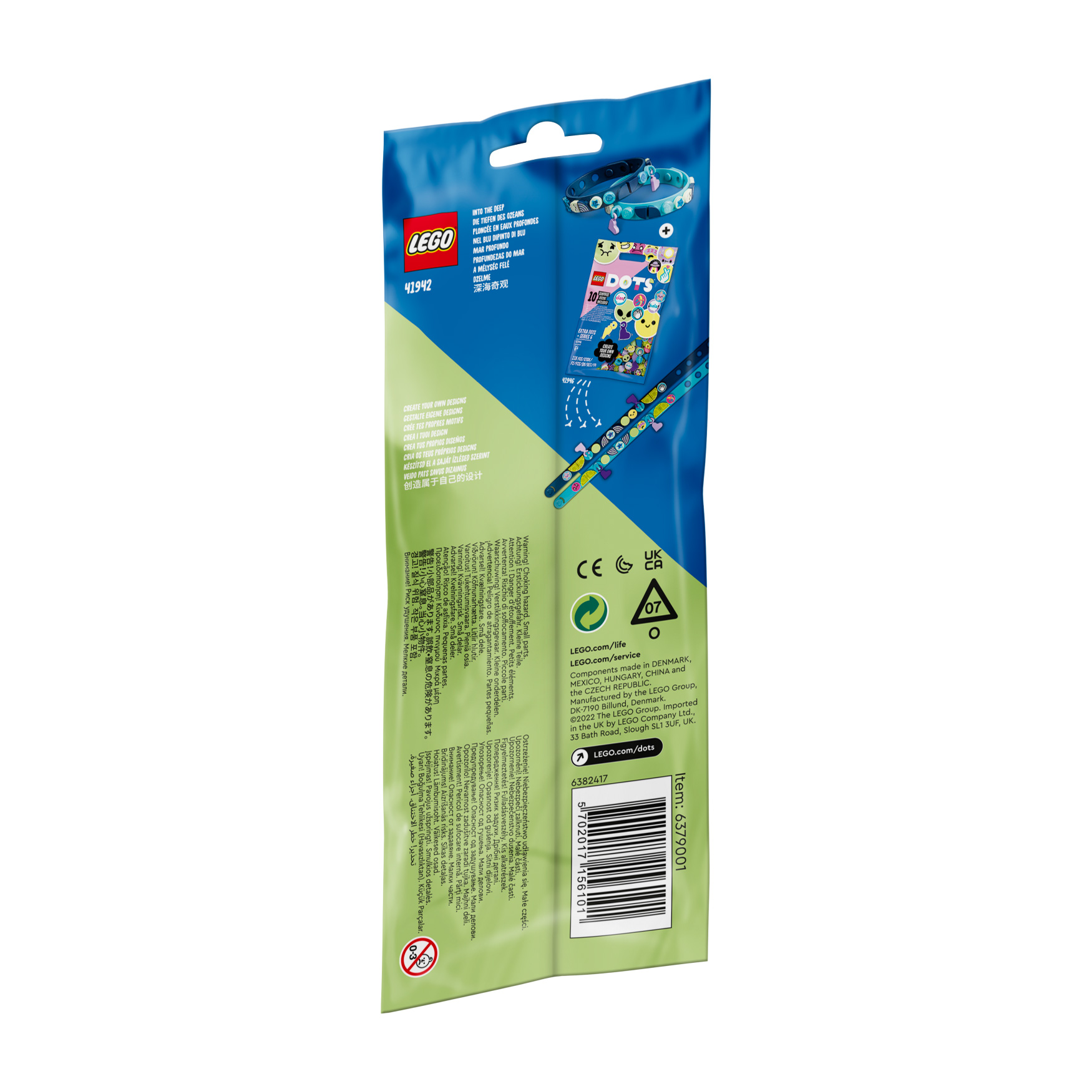 Arts-and-crafts fans can make a stylish splash with this LEGO® DOTS Into the Deep Bracelets with Charms (41942) set. This kit, designed for kids aged 6+, includes 2 adjustable bracelets, new-for-January-2022 charm bases and dangling charms, plus lots of under-the-sea-inspired tiles. The bracelets are easy and intuitive to create, and kids can make them uniquely theirs to suit their outfit or mood.