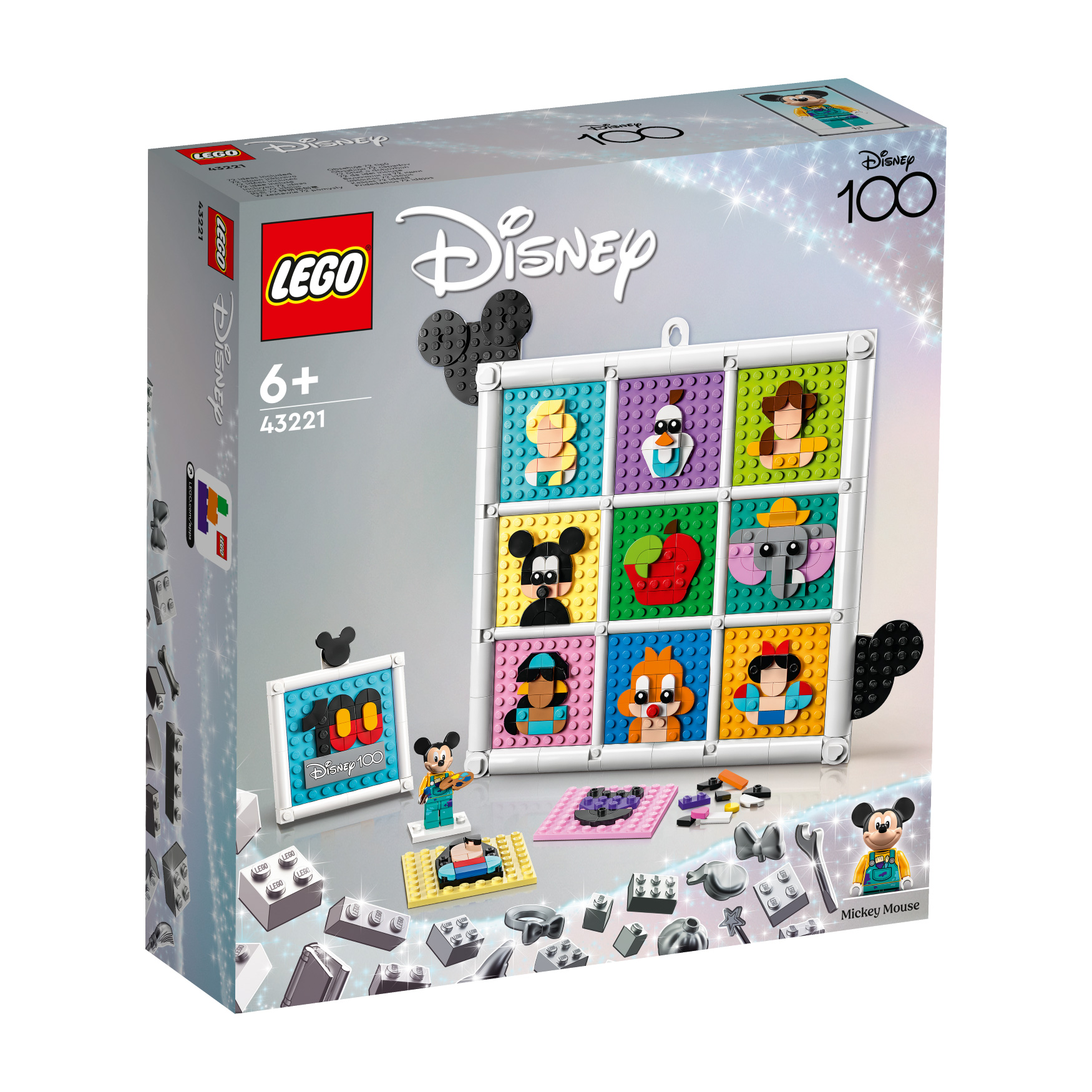 Captivate fans and kids aged 6 and over and inspire Disney decoration creativity with this LEGO® ǀ Disney 100 Years of Disney Animation Icons (43221) set. The set features 12 8×8 plates, picture frame and hanger elements, and loads of tiles to build up to 12 icons at once, plus an exclusive Disney’s Mickey Mouse minifigure and building instructions with extra inspiration. As they build, kids can also enjoy an easy and intuitive adventure with the LEGO Builder app. They can zoom in and rotate models in 3D, save sets and track their progress.