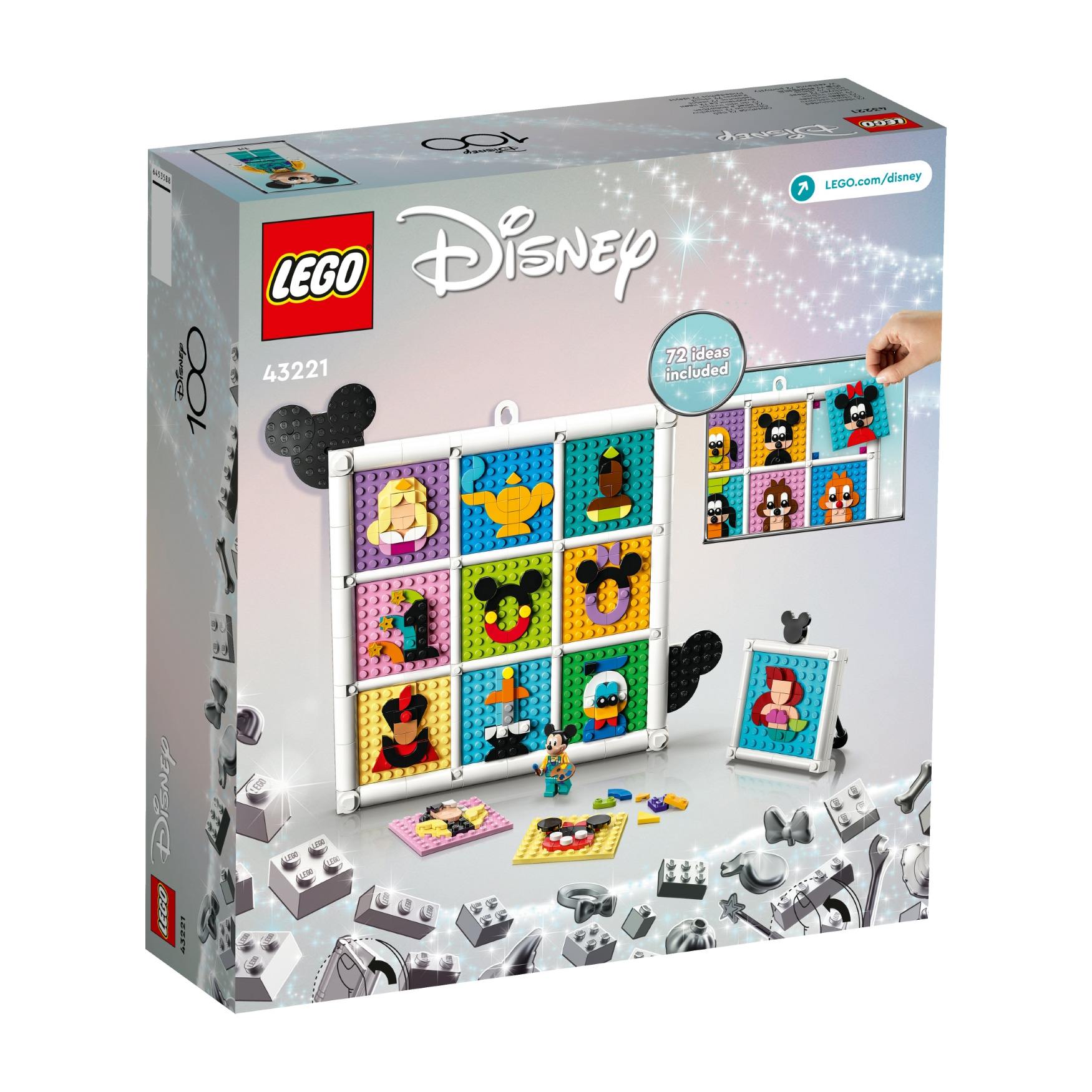 Unlimited fun – The set has 12 8×8 plates, picture frame elements, loads of tiles to create a full collection at once and an instruction booklet with 72 Disney designs sorted into 6 collections of 12