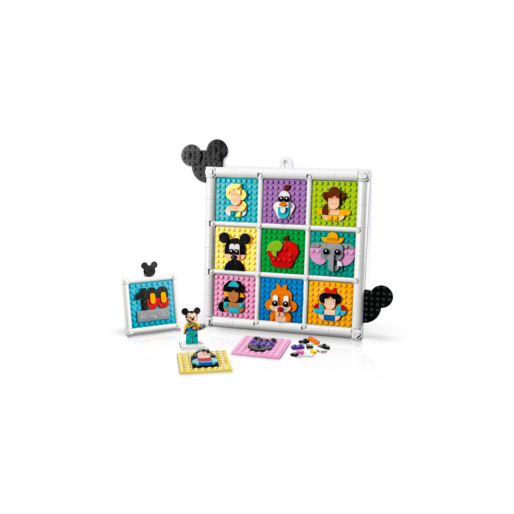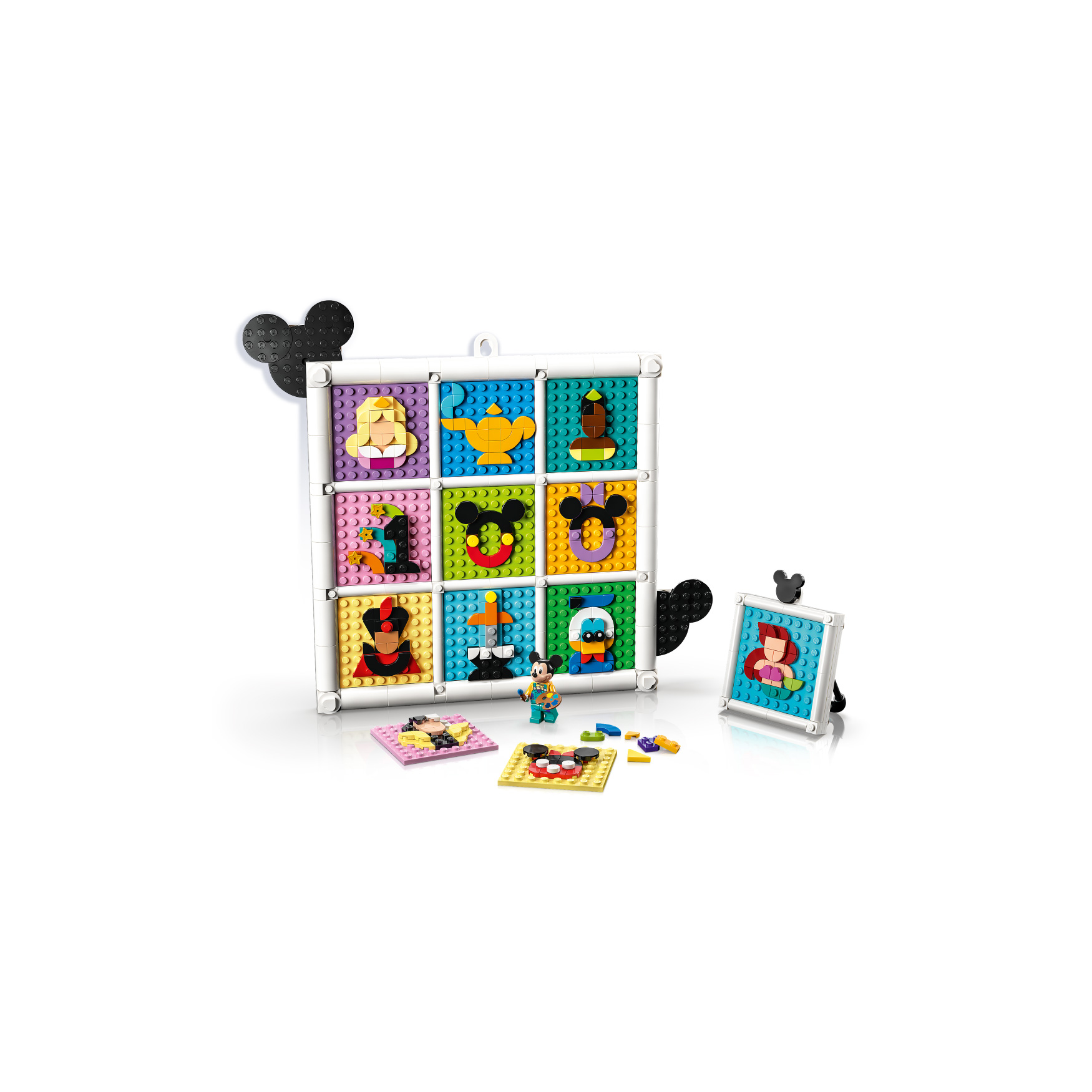 Exclusive addition – This kit includes a Disney’s Mickey Mouse minifigure with a torso and legs decorated exclusively for this set, holding a brush and palette