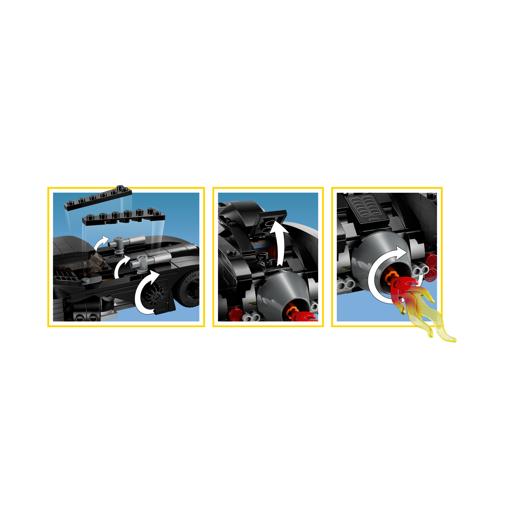 Authentic action – The vehicle features an accessible cockpit for the Batman™ minifigure, a control that raises 2 blasters into position, a flip-open boot and a flaming exhaust pipe