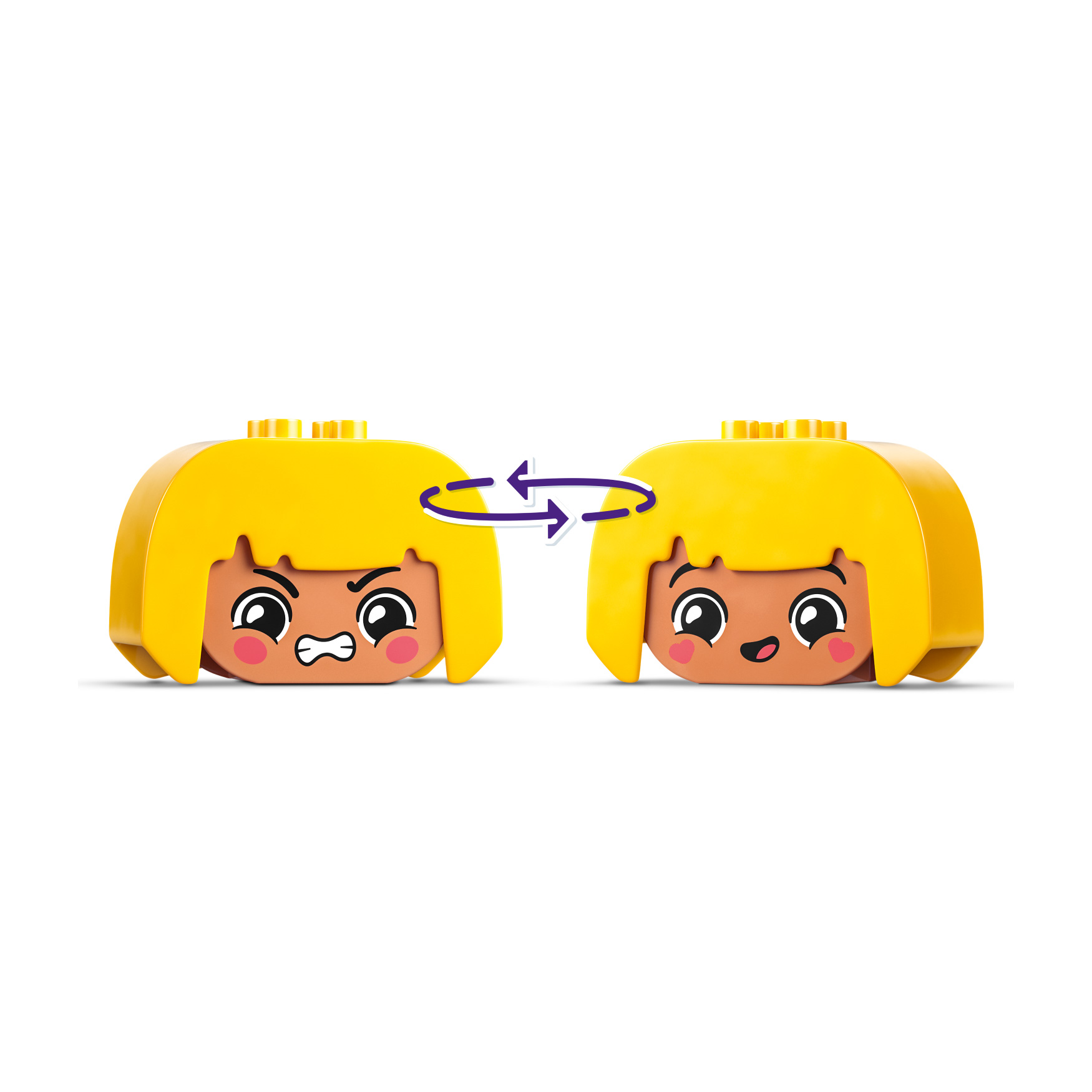 Creative learning toys – By stacking the colored toy bricks, toddlers match or contrast the characters’ wigs then choose how the LEGO® DUPLO® people are feeling with the expression bricks