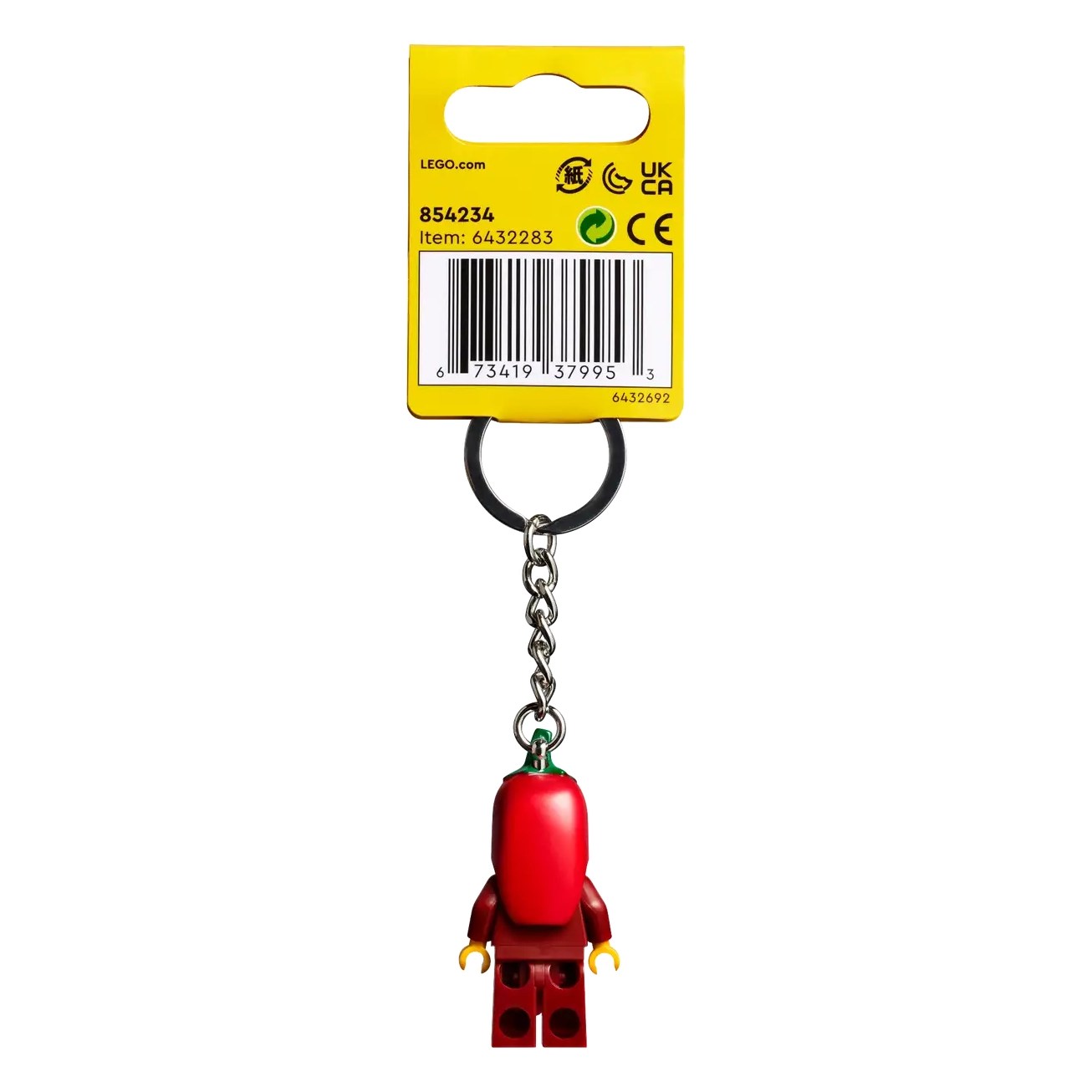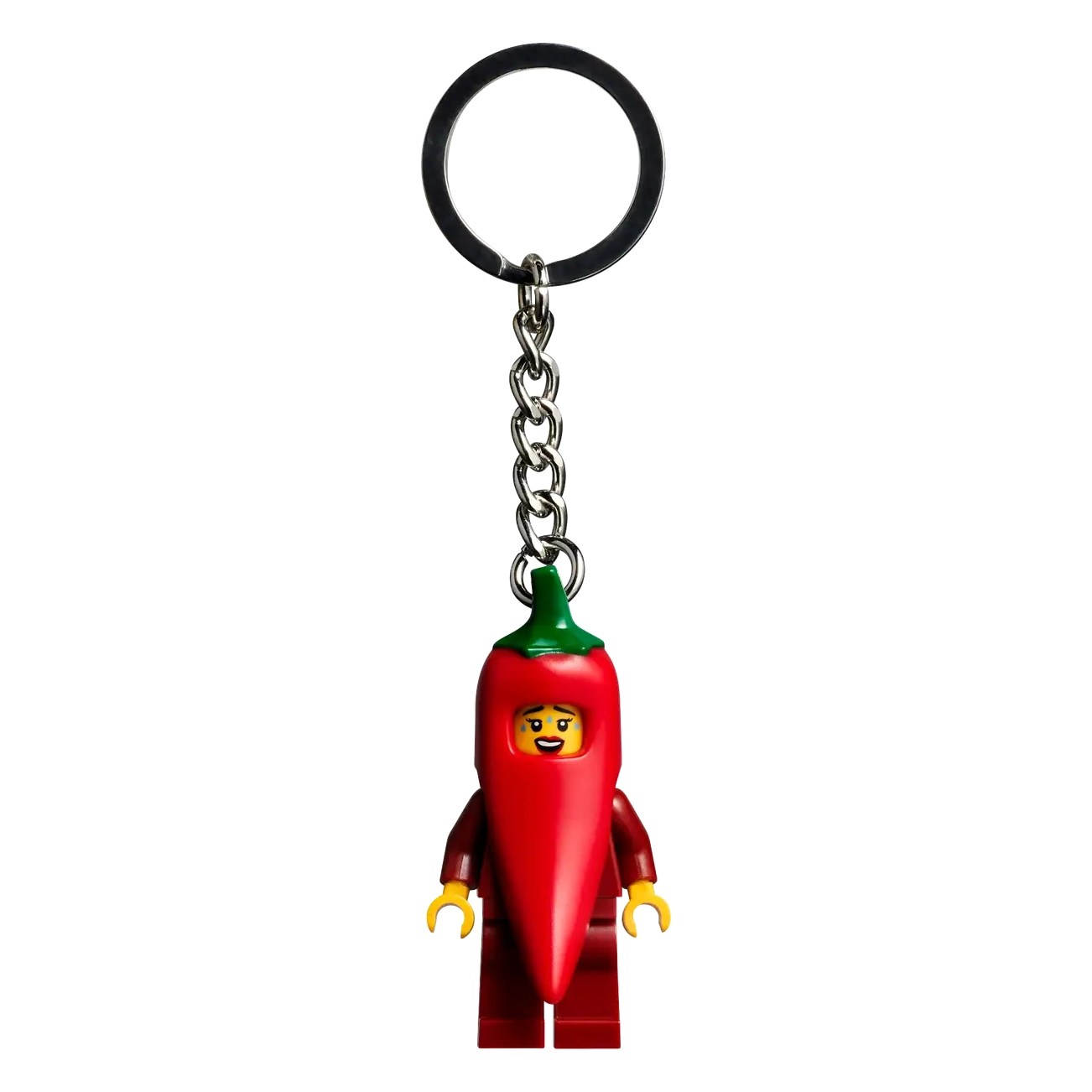 The LEGO® Chili Girl Keyring (854234) combines a practical product with a fun chili-pepper minifigure! Whether attached to keys, bags, backpacks or anything else, the strong metal ring and chain ensure the fiery figure remains securely attached. This fun keyring is a practical gift idea for chili lovers aged 10 and up.