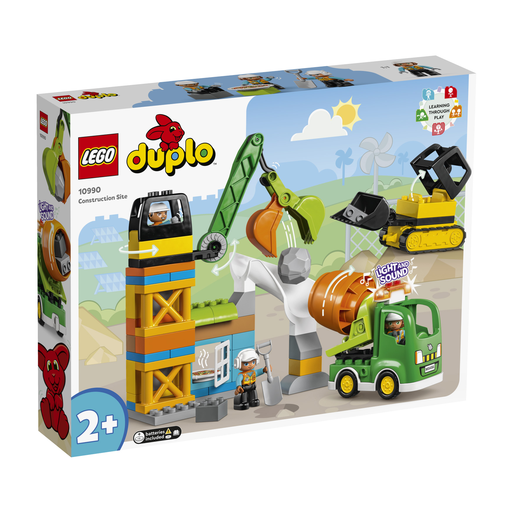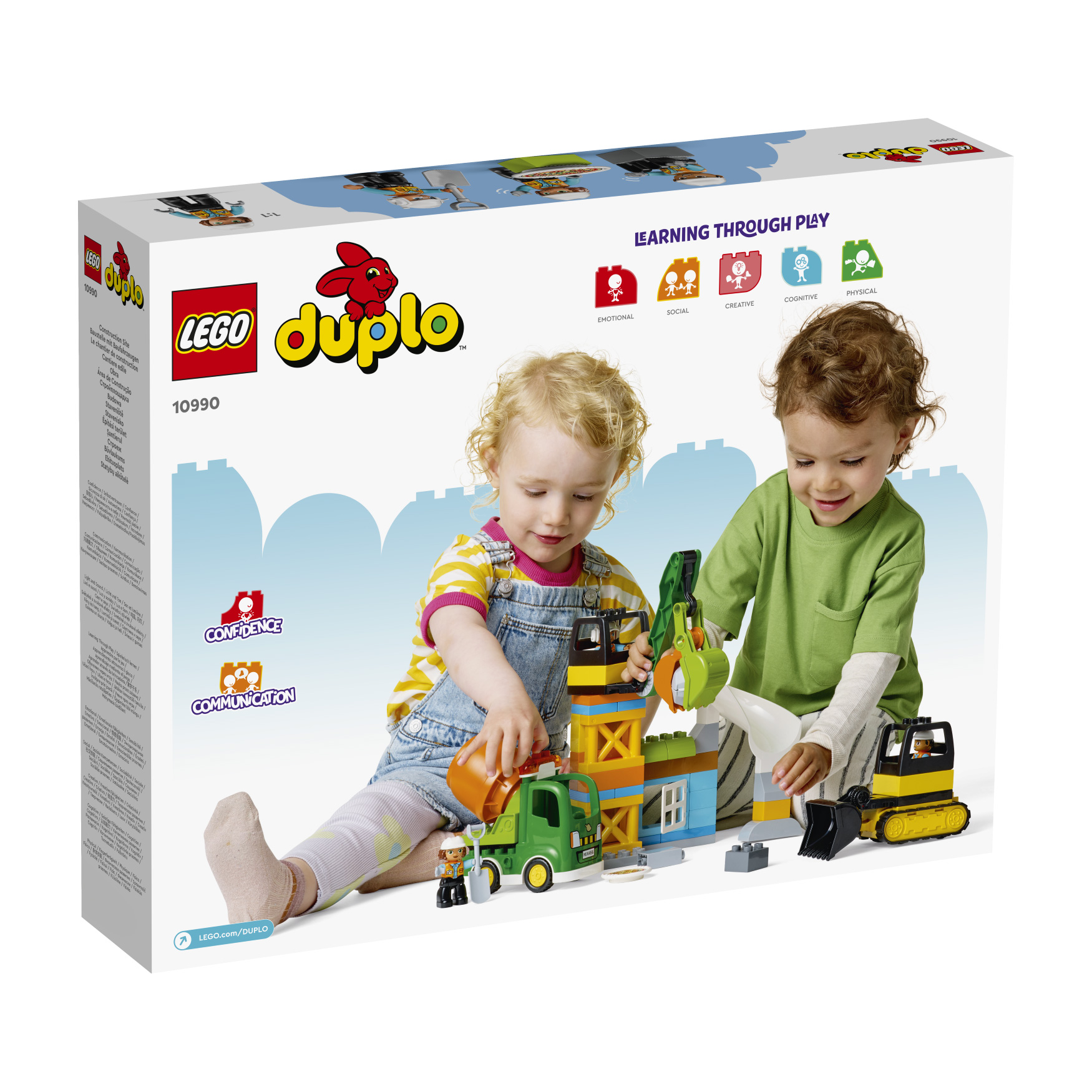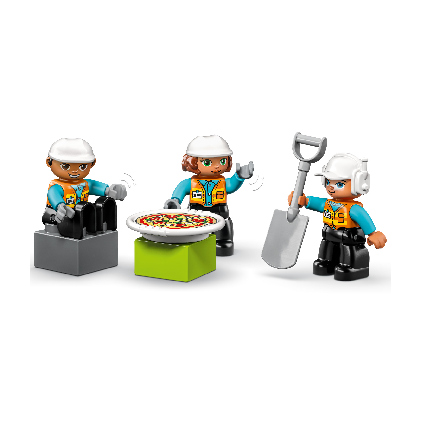 Lay the foundations for strong building skills with the LEGO® DUPLO® Town Construction Site (10990) toy. This feature-rich set is packed with details to inspire role play and help develop self-expression. Toddlers aged 2+ learn about teamwork as the trio of toy construction site workers operate the 3 vehicles. The bulldozer brings the boulder and the crane grabs it and carries it to the chute where it slides down into the cement mixer. When the work is over there’s a tasty pizza to reward the construction workers for a job well done.