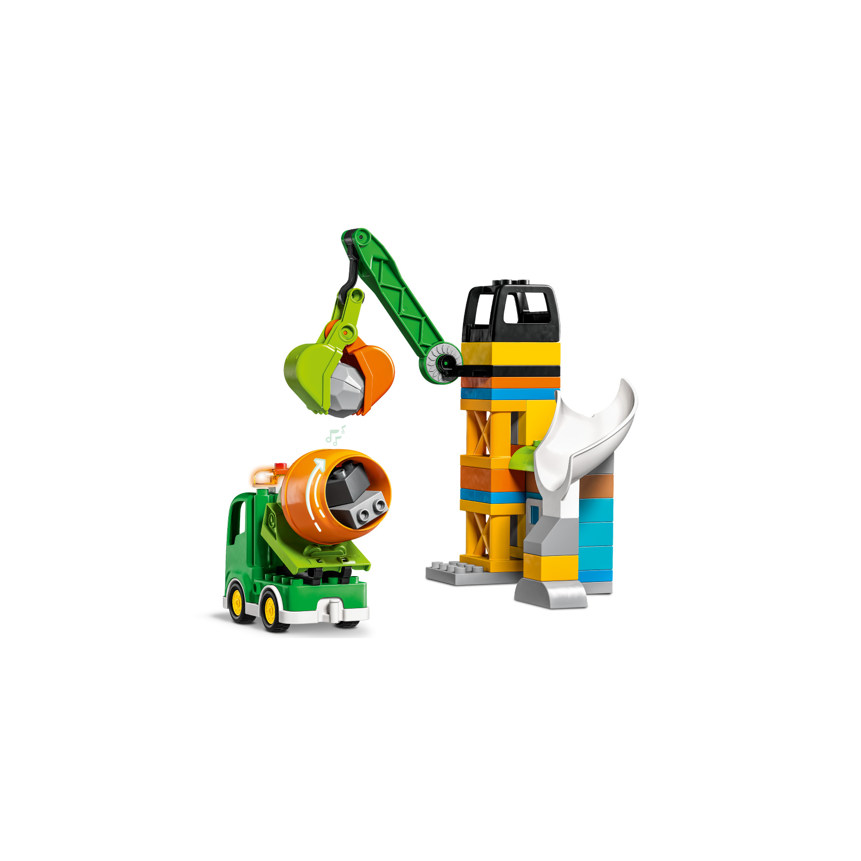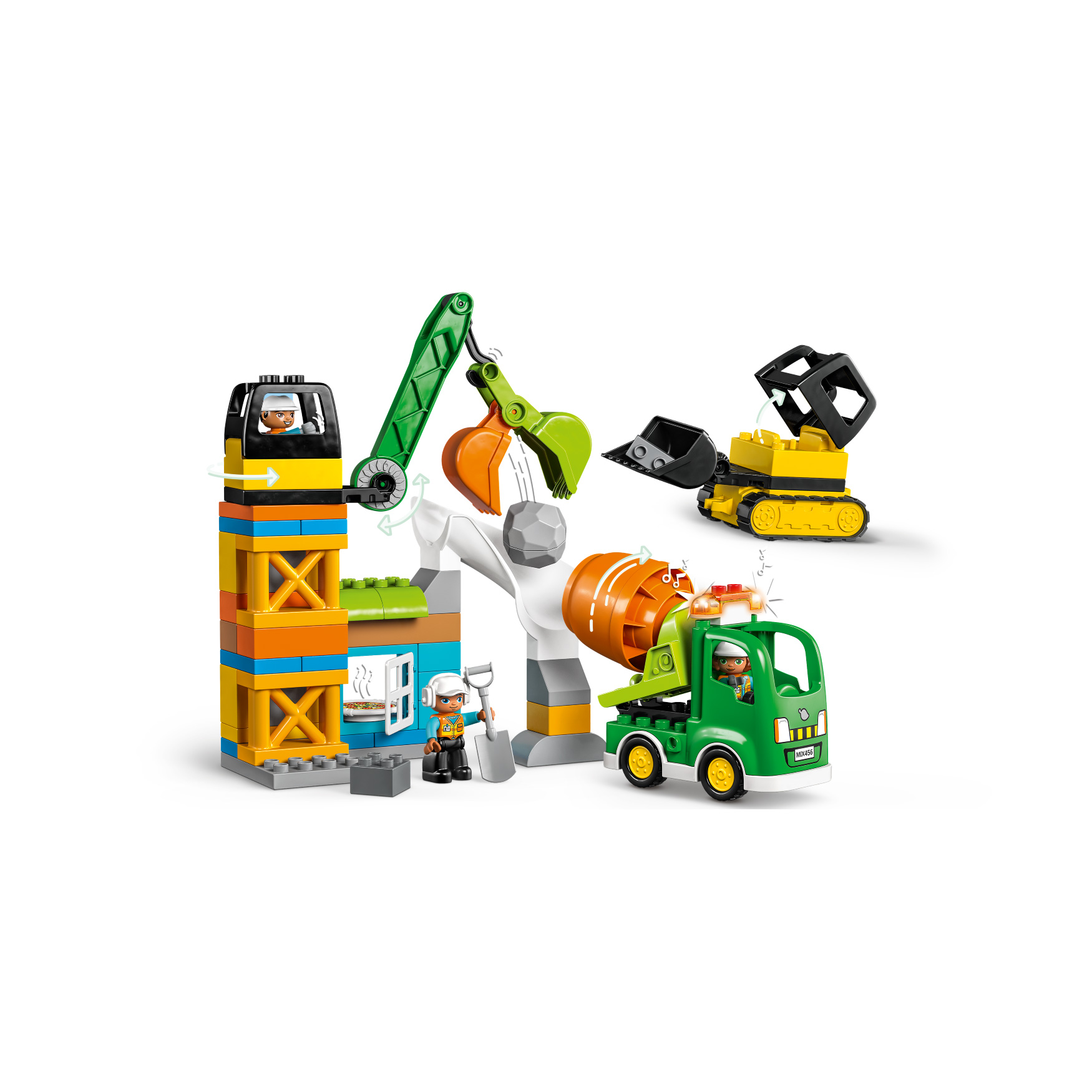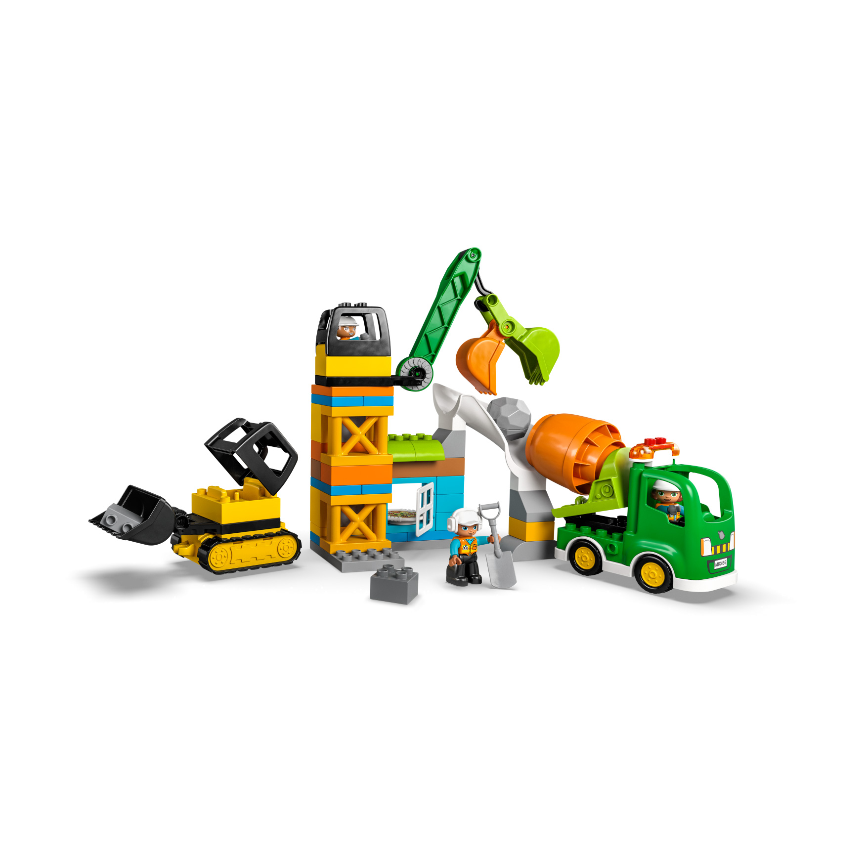 Lay the foundations for strong building skills with the LEGO® DUPLO® Town Construction Site (10990) toy. This feature-rich set is packed with details to inspire role play and help develop self-expression. Toddlers aged 2+ learn about teamwork as the trio of toy construction site workers operate the 3 vehicles. The bulldozer brings the boulder and the crane grabs it and carries it to the chute where it slides down into the cement mixer. When the work is over there’s a tasty pizza to reward the construction workers for a job well done.