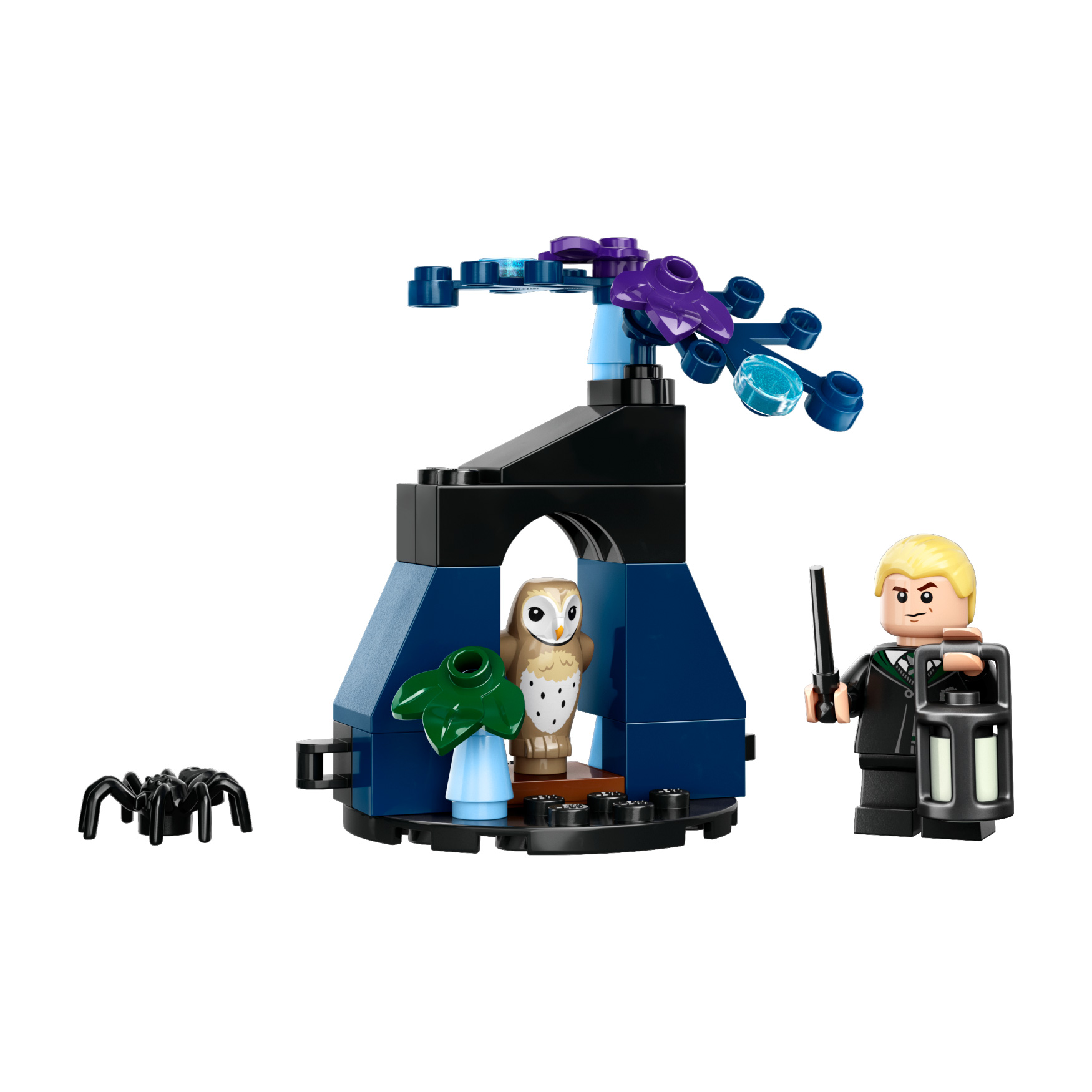 This LEGO® Harry Potter™ “Draco in the Forbidden Forest™” mini model (30677) awakens the imagination of young Harry Potter™ fans with the Forbidden Forest™, the Draco Malfoy™ minifigure, his glow-in-the-dark lantern, as well as an owl and a spider .