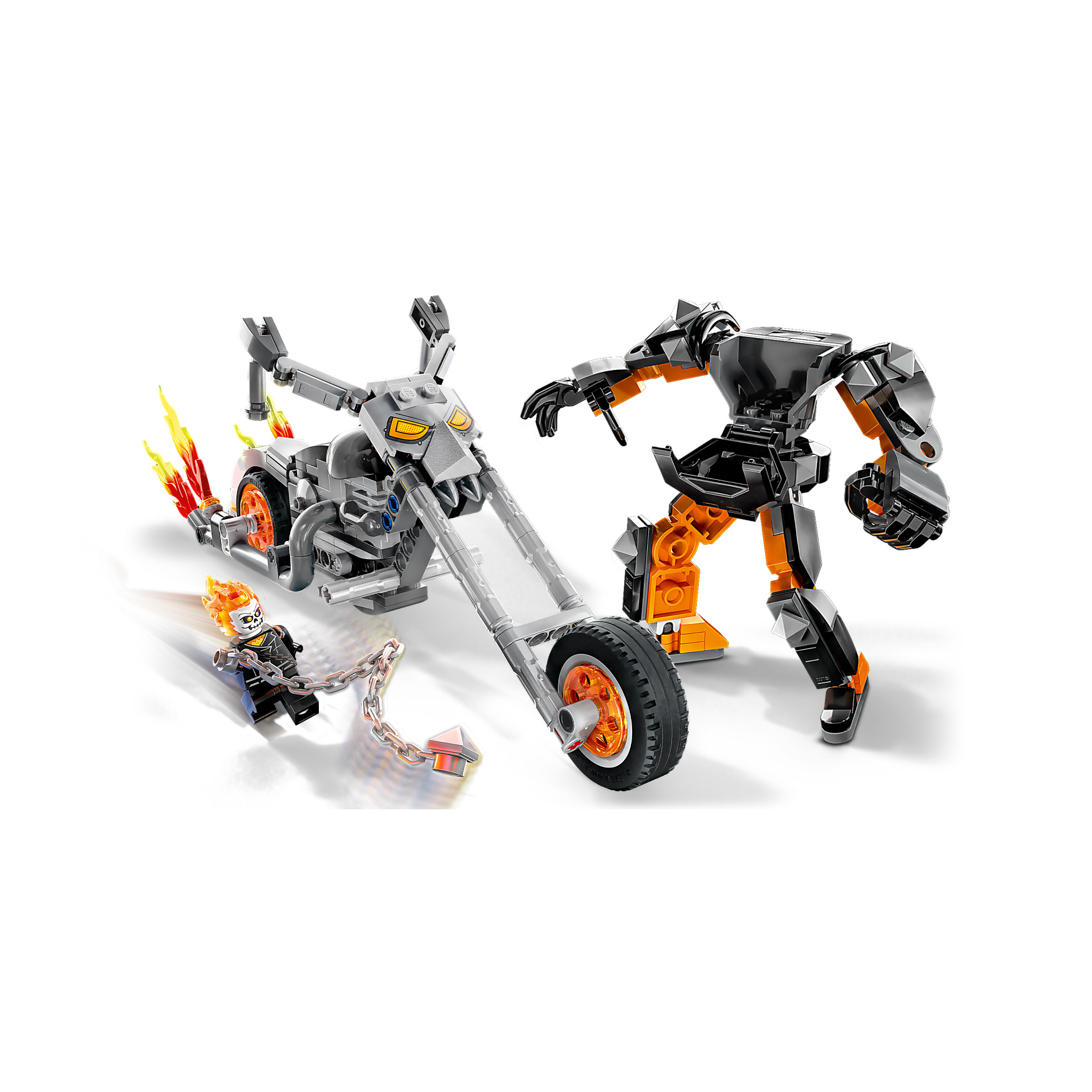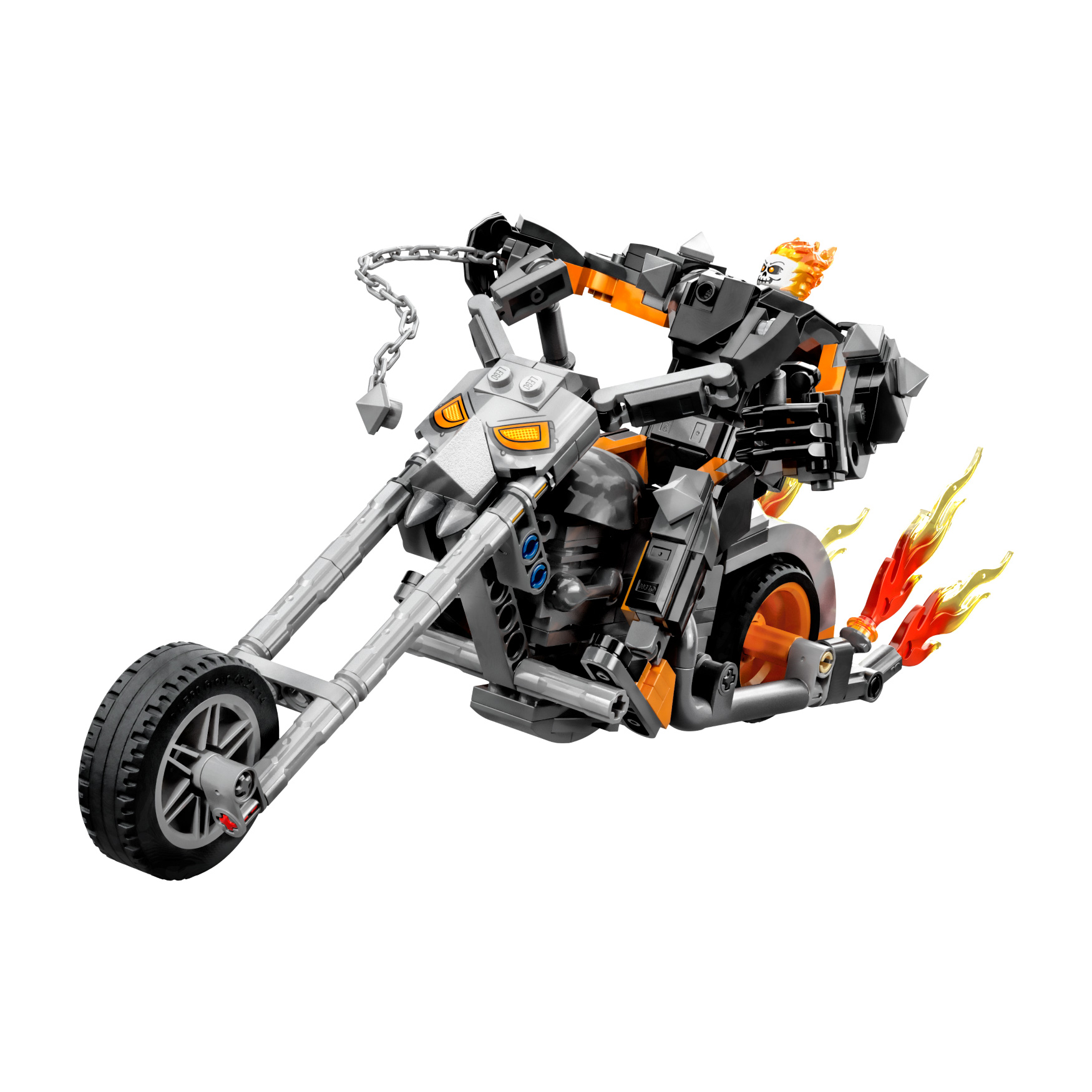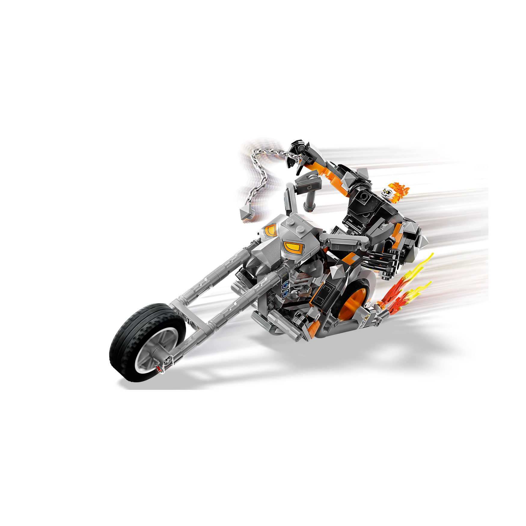 Kids place the Ghost Rider LEGO minifigure into the opening cockpit of the Ghost Rider mech. The jointed mech has movable arms, legs and hands, allowing it to be positioned and posed for endless play-and-display possibilities. An attachable chain inspires imaginative action as kids take the supersized mech for a ride in search of bad guys. The bike stands upright unaided and features exhaust flames and a seat element that ensures the mech remains in the saddle when on the move. For added digital fun, the LEGO Builder app features intuitive zoom and rotate tools that let kids visualize their model as they build.