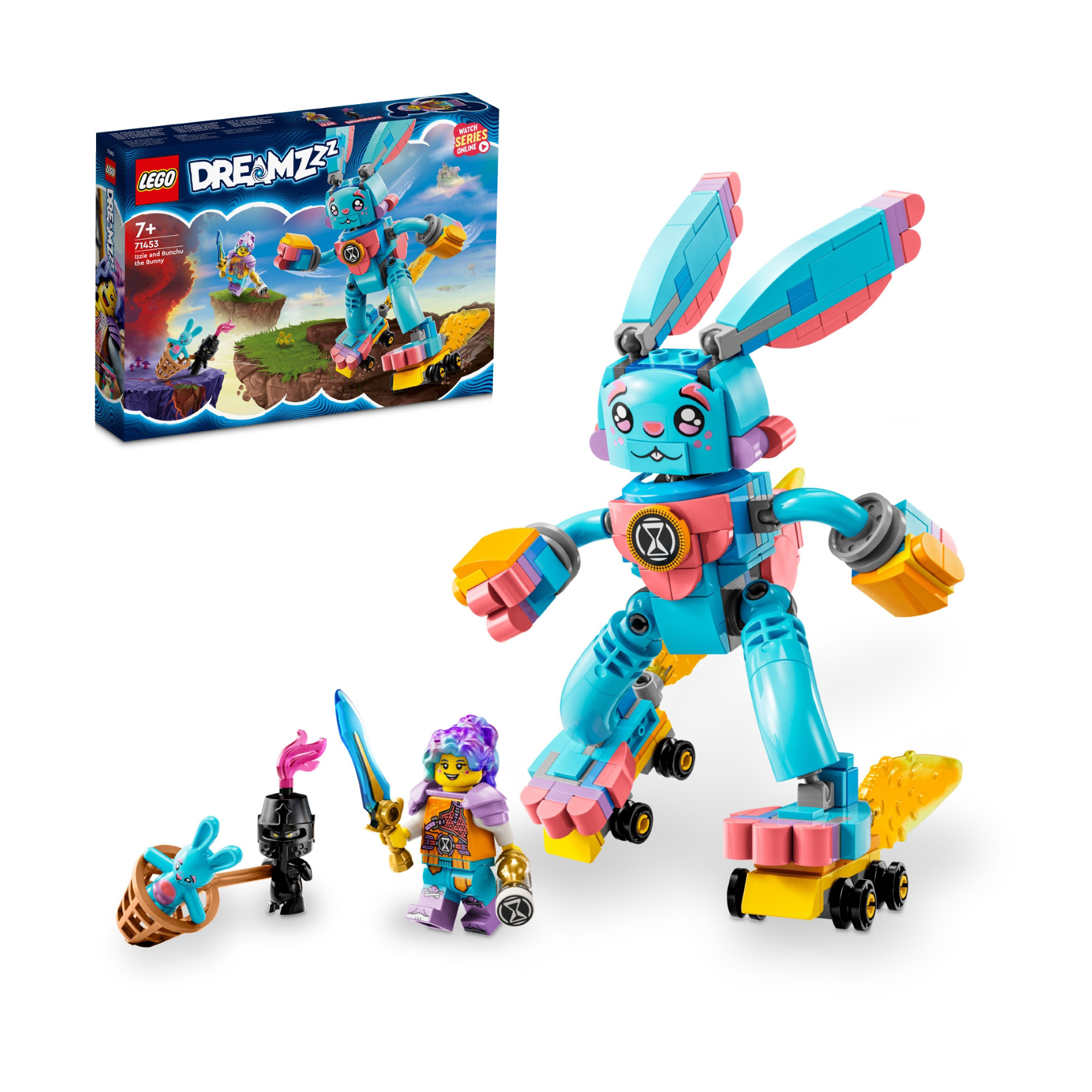 Let kids aged 7+ jump into the action of the dream world with this LEGO® DREAMZzz™ Izzie and Bunchu the Bunny (71453) building toy set. Based on an exciting storyline from the TV show, the set lets kids help main character Izzie create a large version of her favourite cuddly toy to help rescue the stuffed animal, which has been kidnapped by a nightmare Grimspawn.