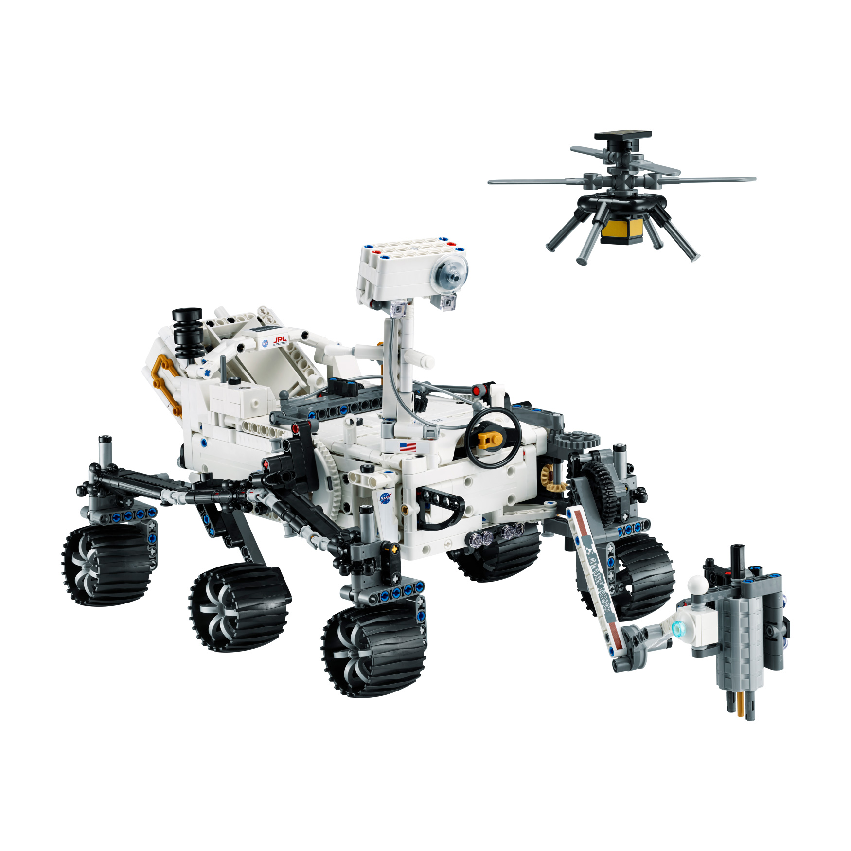 Conduct a test flight – This set includes a buildable toy version of NASA’s Ingenuity helicopter, which accompanied the Perseverance Rover and was used to test powered flight on Mars
