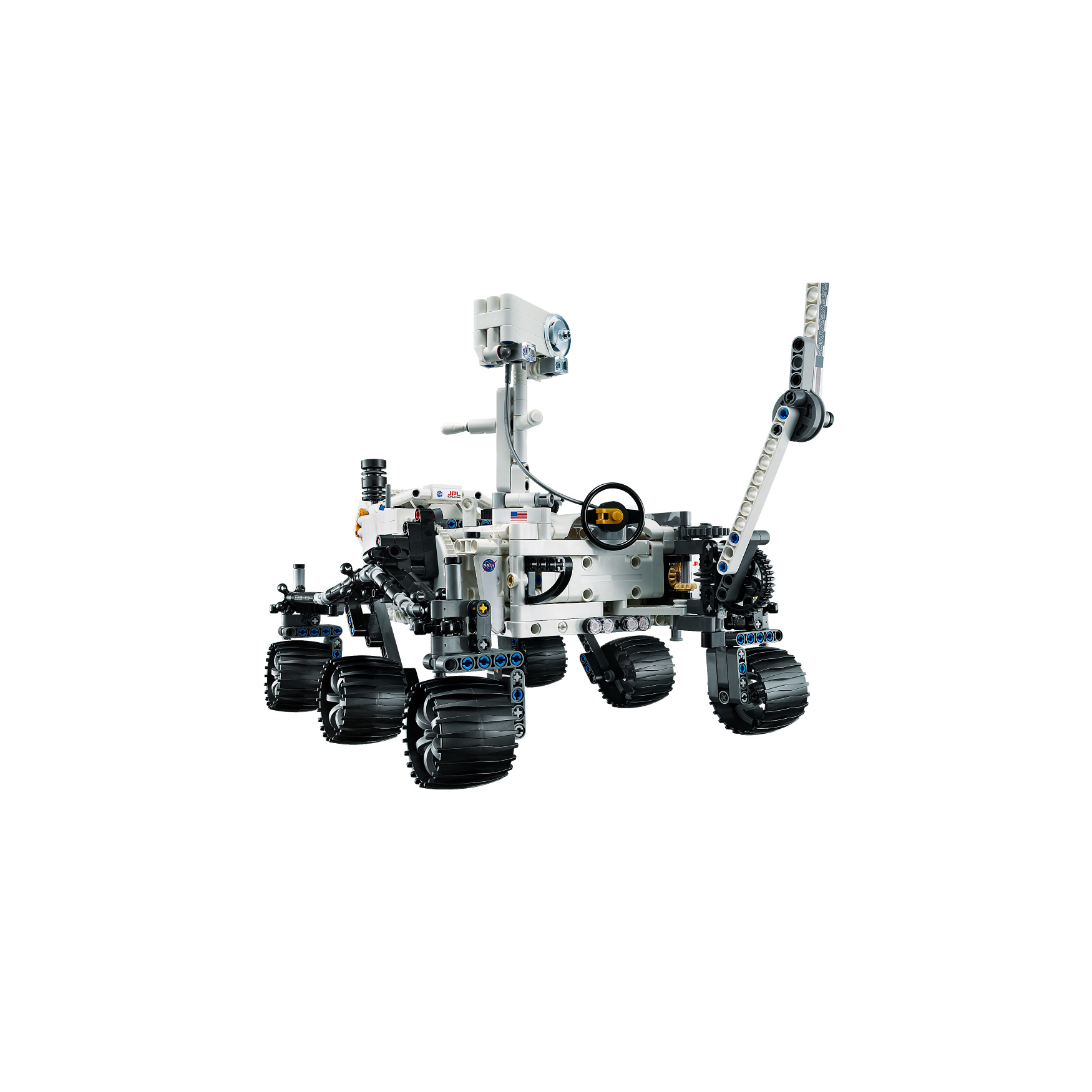 Explore the functions – Features 360° steering, movable arms and fully articulated suspension that lets the vehicle travel across uneven surfaces, plus buildable scientific instruments
