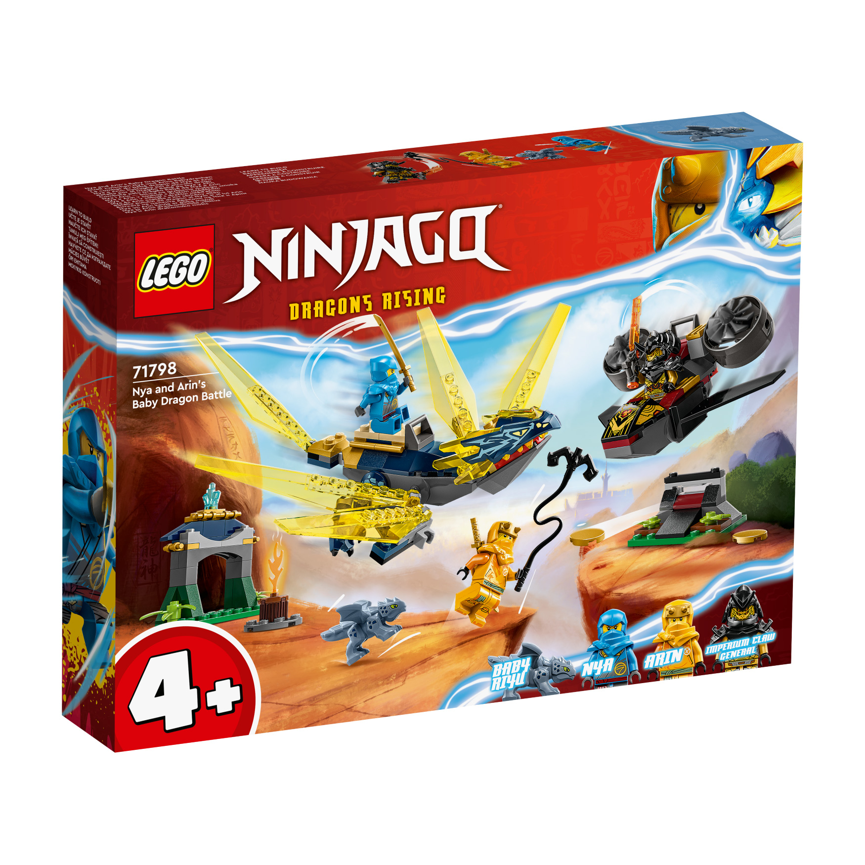 Beginner LEGO® set – Kids aged 4+ can recreate scenes from the NINJAGO® Dragons Rising TV series as they learn to build with the Nya and Arin’s Baby Dragon Battle (71798) playset