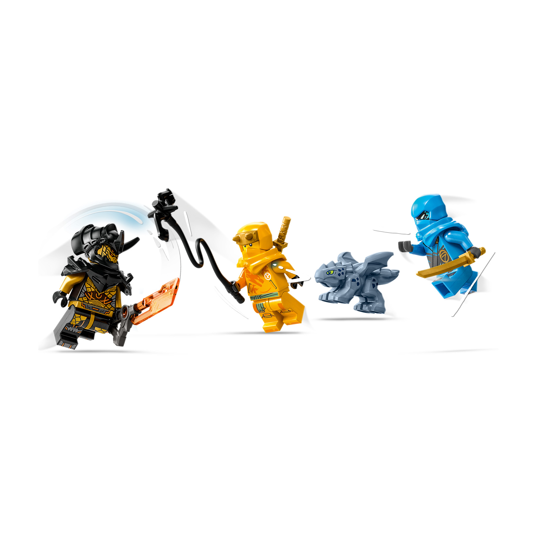 3 minifigures – Includes Nya with a sword and a chicken bone for Baby Riyu, Arin with a sword and grappling hook, and the Imperium Claw General with a sword