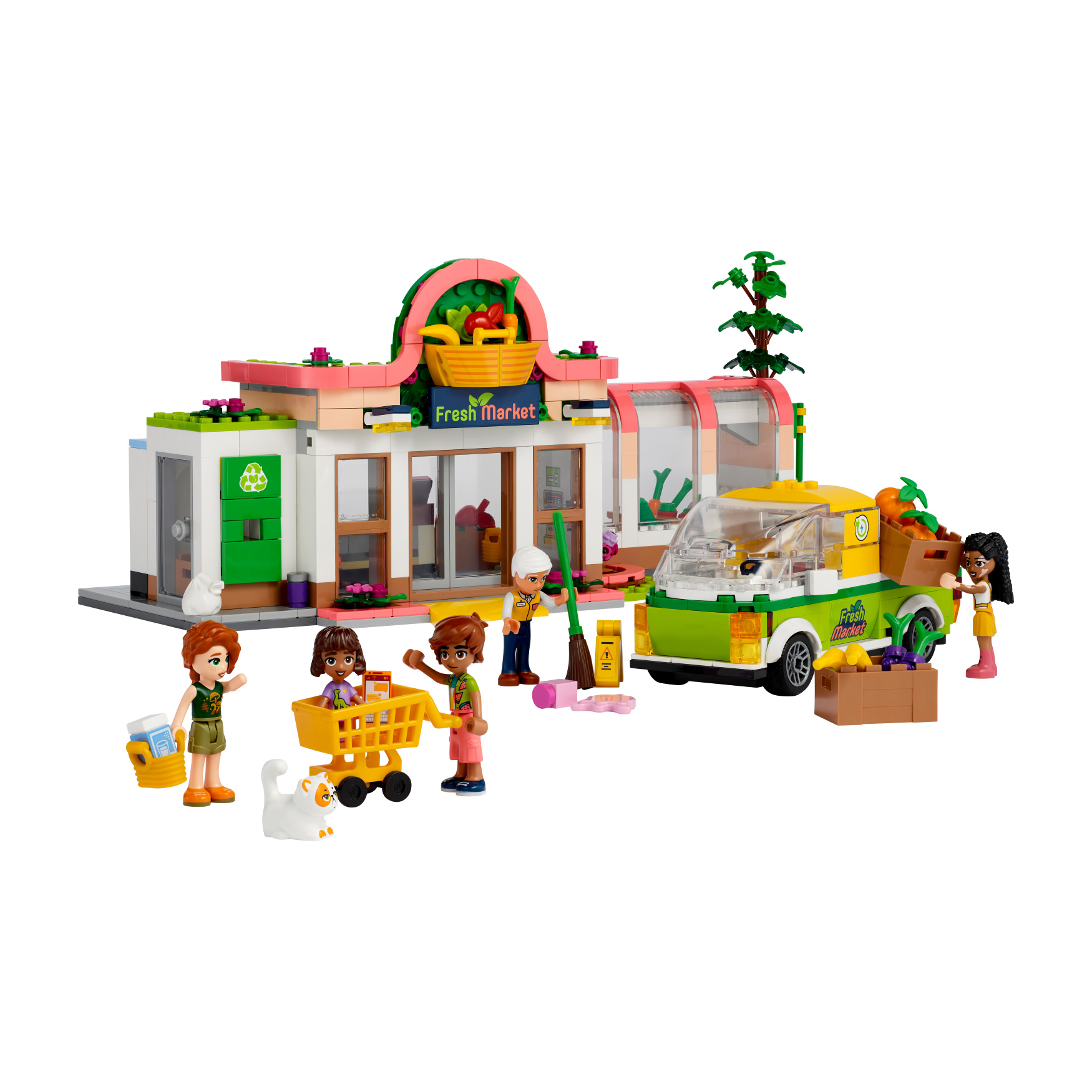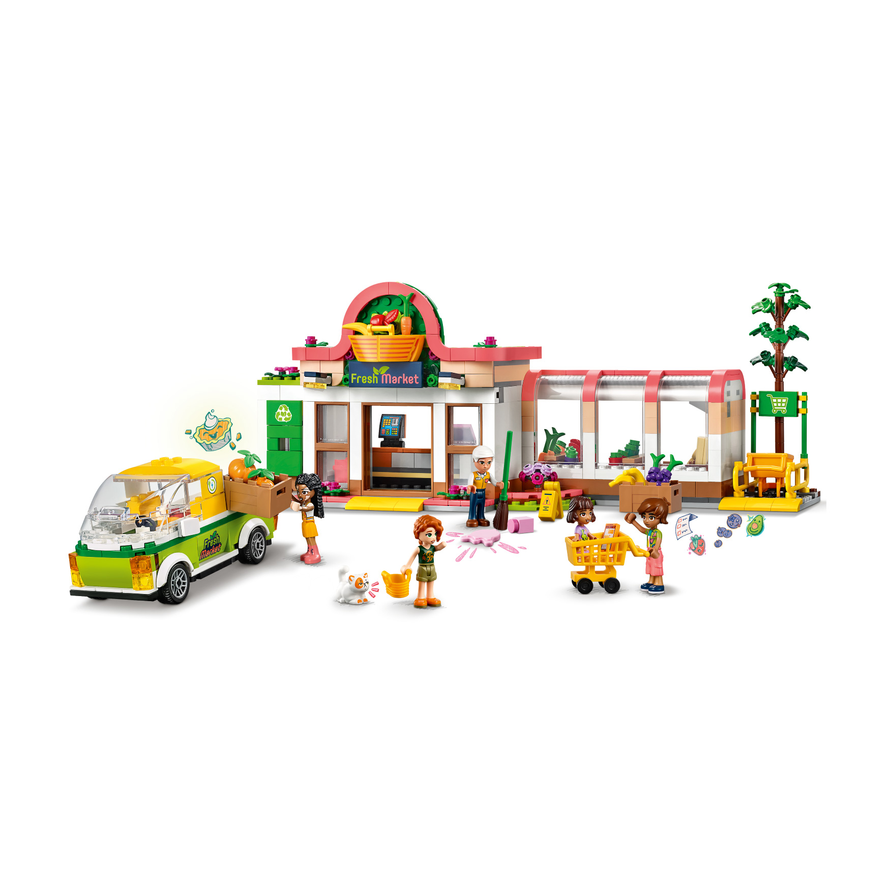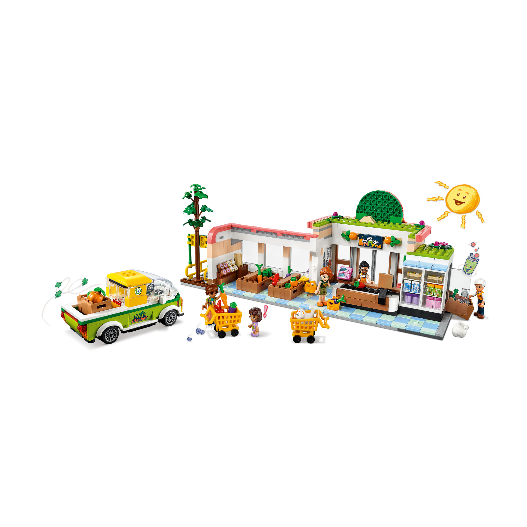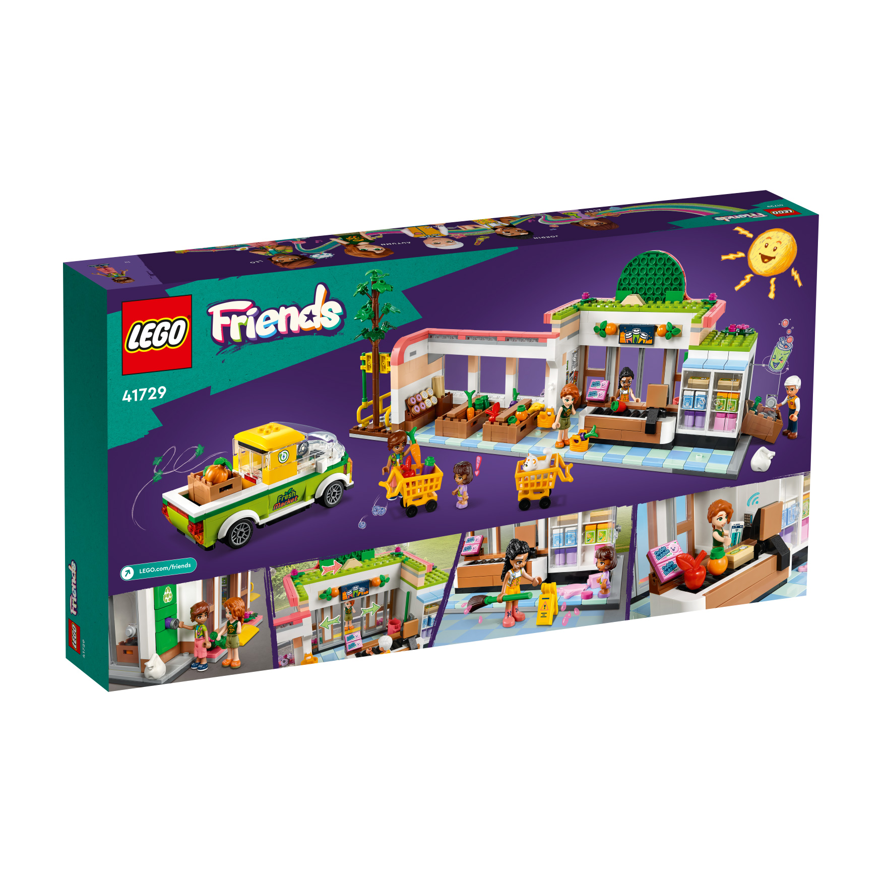 Inspire creative role play at the grocery store for kids aged 8+ with this LEGO® Friends Organic Grocery Store (41729) set. It’s packed with toy grocery store accessories that kids can use to explore the characters’ interests. Autumn is passionate about helping the planet, so she loves visiting the organic store. Here she meets her friend Leo, who loves to cook and try out new recipes. Kids will enjoy spotting features from real-life grocery stores like the sliding doors, shopping carts, recycling bank and delivery vehicle. The set comes with 4 mini-dolls, plus a younger sister Alba and Churro the cat characters.