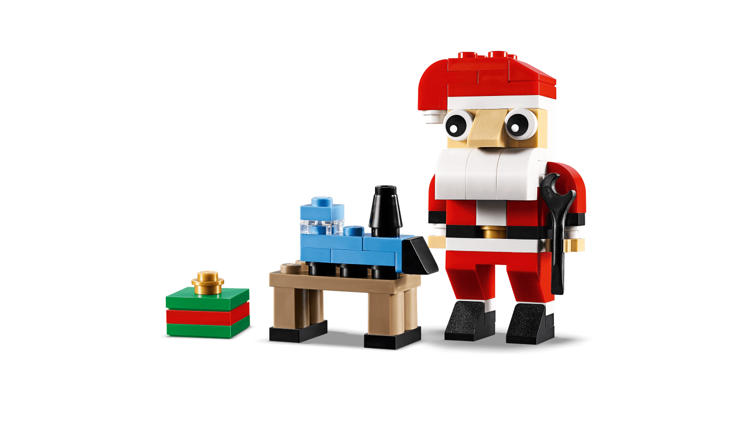 Ho Ho Ho! Santa Claus is assembling toys for the children at his magical workbench.