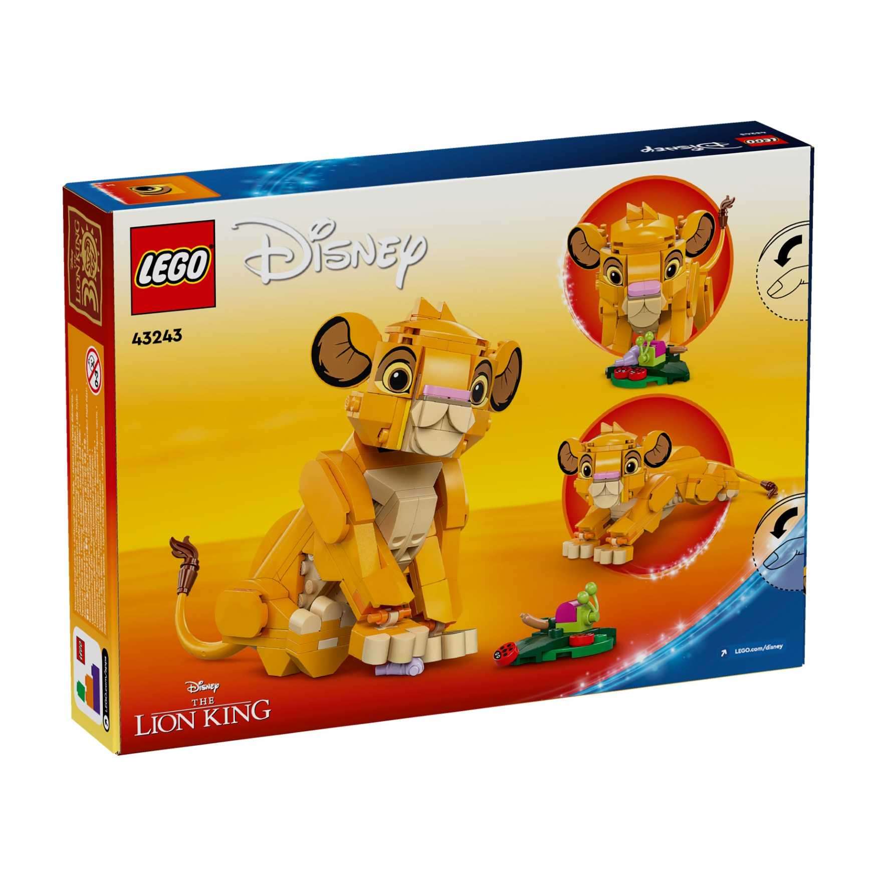 Moving parts – The buildable toy Simba LEGO® ǀ Disney animal figure has a rotating head and movable legs and tail, and it can be posed either standing up or sitting down