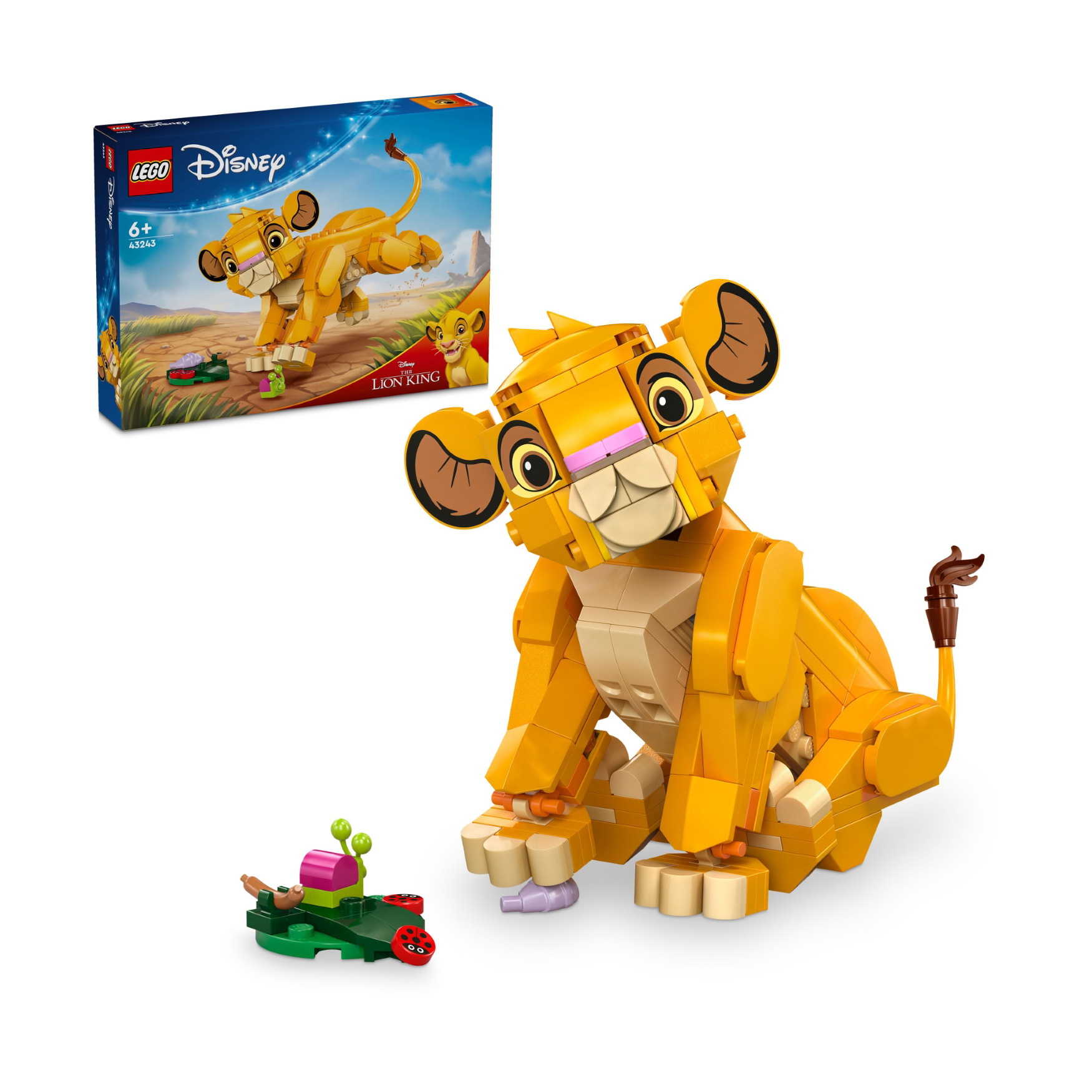 Appeal to kids and The Lion King fans aged 6+ with this fun gift of a LEGO® ǀ Disney Simba the Lion King Cub (43243) play-and-display building toy, featuring a buildable character model that celebrates The Lion King’s 30th anniversary. The precocious baby Simba LEGO ǀ Disney animal figure from the hit movie has a rotating head and movable legs and tail, and it comes with a leaf and 4 ’bugs’ for ’food’.