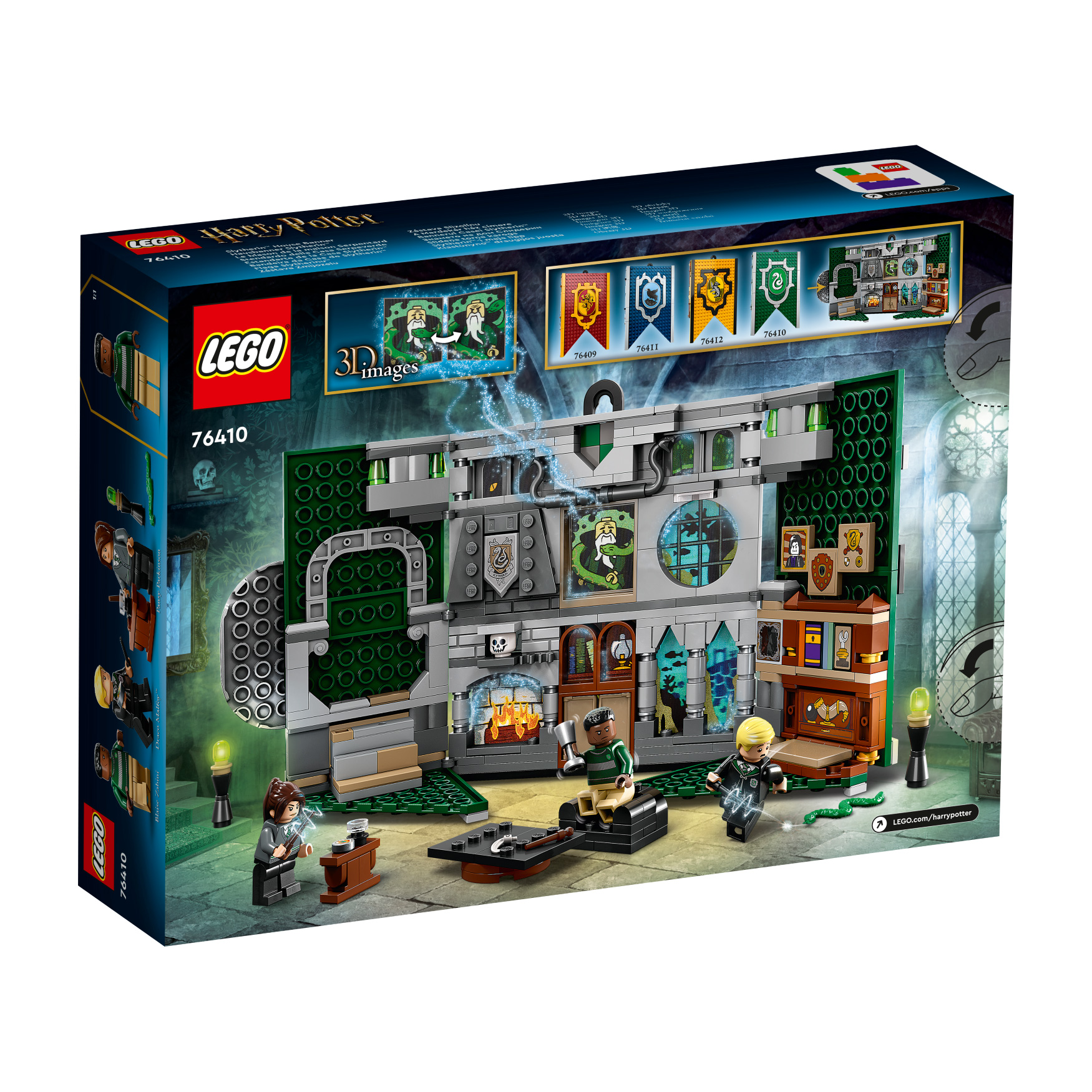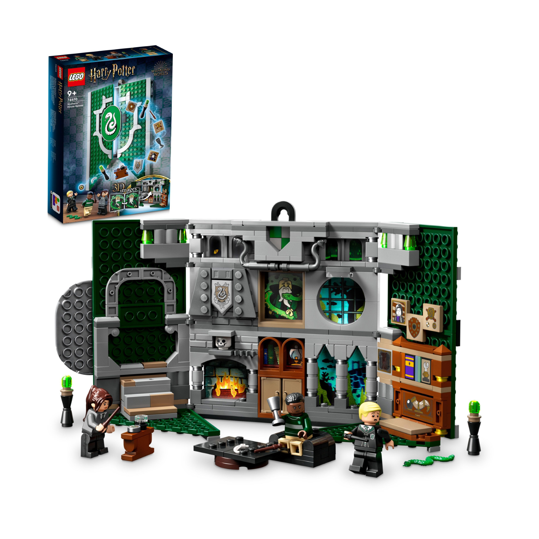 Harry Potter™ fans can demonstrate Slytherin™ house pride with this LEGO® brick-built house banner (76410). An ace everyday gift for kids aged 9 and up, it features a printed tile with the Slytherin crest and a hanger to display it on the wall. The banner also opens to reveal a spellbinding recreation of the Slytherin common room with a buildable sofa, lamps and steps. A slide-in lenticular backboard creates magical 3D effects, including moving monstrous eyes, a light turning on and off, a secret message appearing in the cupboard, and more.