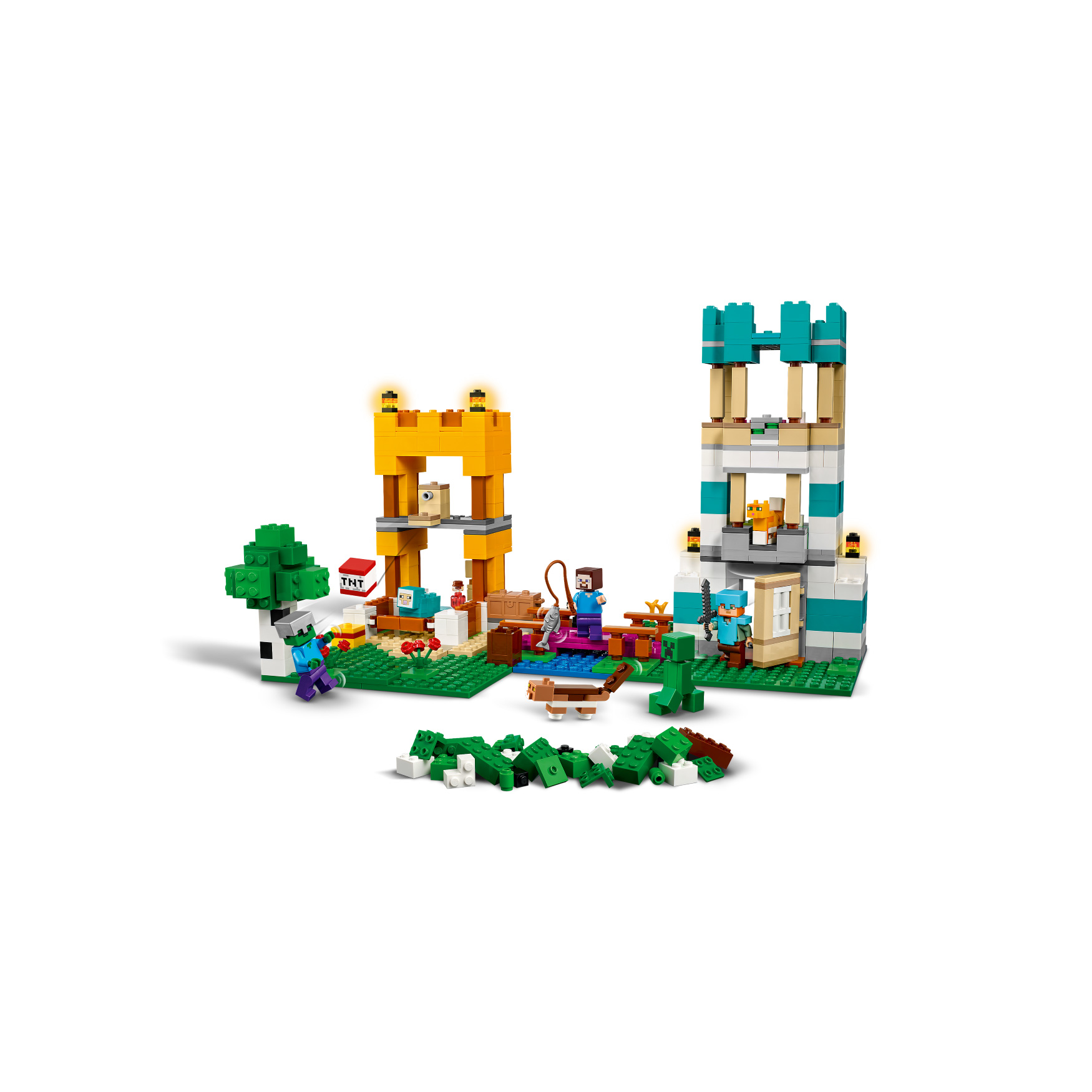 2 Minecraft® worlds in 1 set – LEGO® Minecraft The Crafting Box 4.0 (21249) inspires players with 2 large-scale sets and endless free-building fun in 1 epic collection of Minecraft bricks and pieces