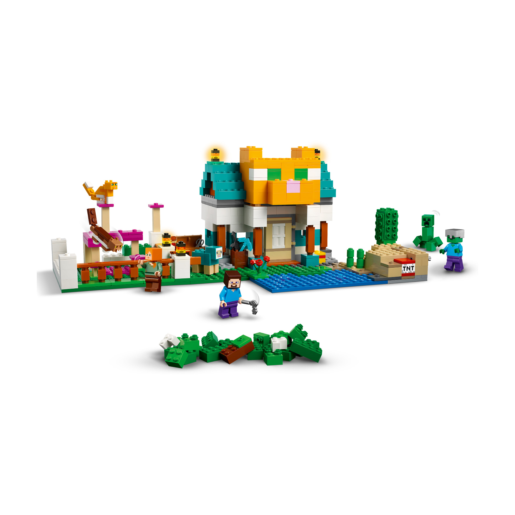 This endlessly versatile playset offers 2 different scenarios for kids to build: the River Towers, a fortress-like structure that can be used to defend against a zombie and Creeper™ attack; or the Cat Cottage, which consists of a large, cat-shaped house with a cat playground next to it. These distinct builds, along with suggested models designed to inspire kids’ creativity and the countless structures they build from their own imaginations, are populated by iconic figures and mobs from the game, including Steve, Alex, a zombie, Creeper, cats and sheep. A host of Minecraft features and functions, including exploding TNT, bring extra realism to this epic playset. For added digital fun, builders can zoom in and rotate sets in 3D and track their progress using the fun, intuitive LEGO Builder app.