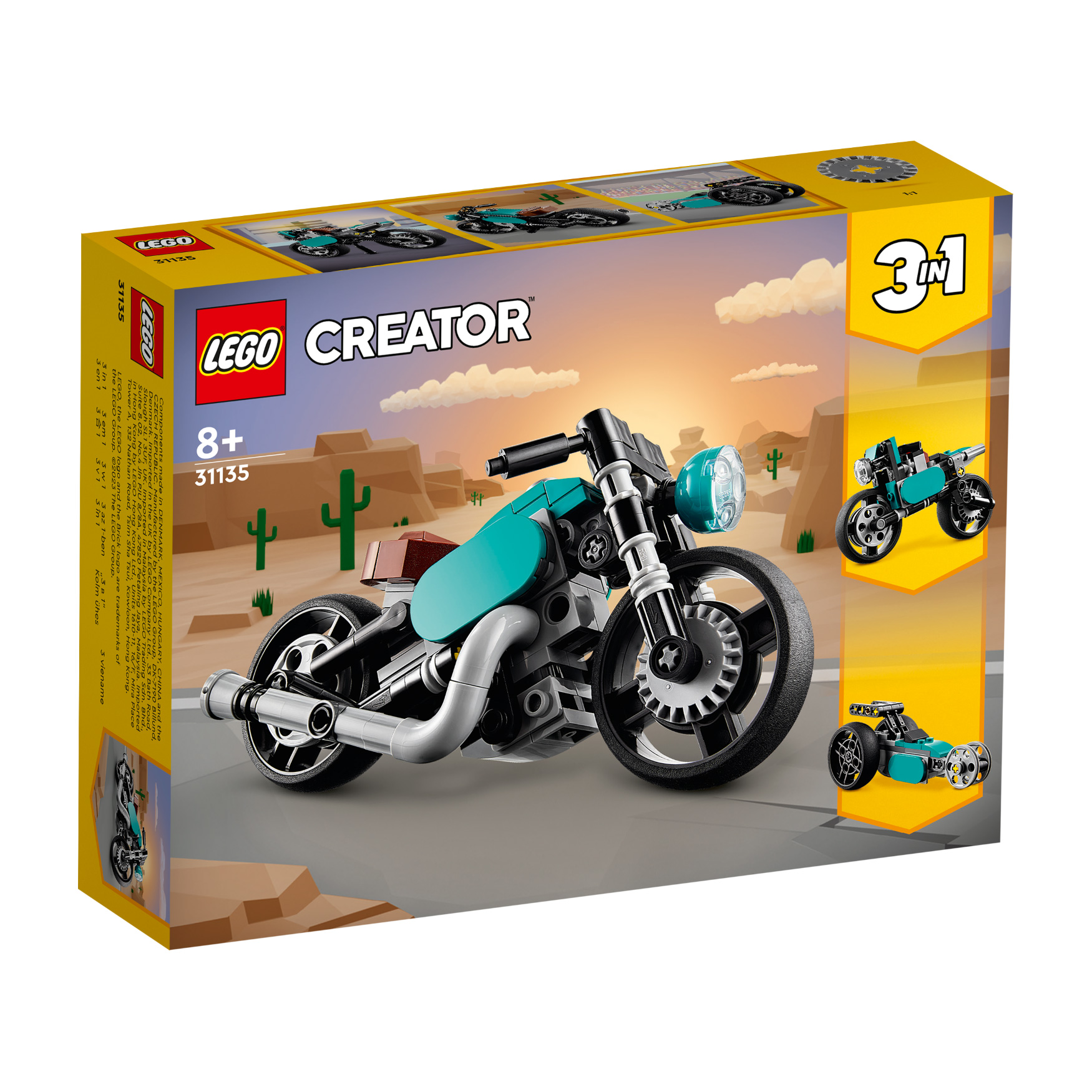 Kids and lovers of cool vehicles aged 8+ can enjoy countless hours of racing action with this brilliant LEGO® Creator 3in1 Vintage Motorcycle (31135) playset. The classic toy motorcycle features handlebars, a moving front wheel, headlights, a large exhaust and a kickstand for display.