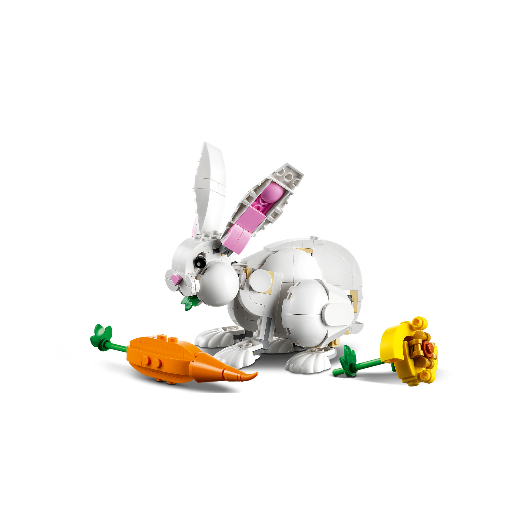 Kids aged 8 and up can play out fun stories with this fantastic LEGO® Creator 3in1 White Rabbit (31133) playset. It features a brick-built toy bunny with a posable head, legs, mouth and ears, and it comes with a choice of 2 snacks: a carrot or a flower.