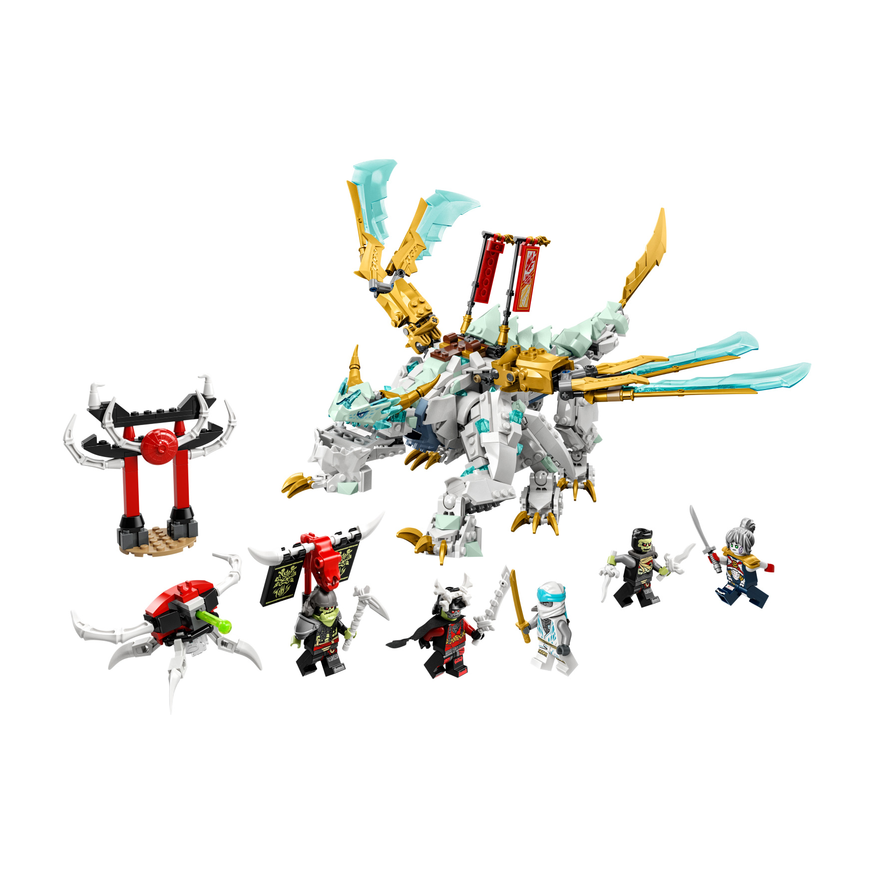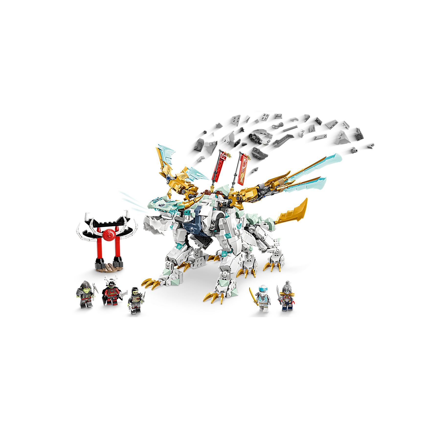The LEGO® NINJAGO® Zane’s Ice Dragon Creature (71786) playset is packed with everything kids aged 10+ need to enjoy role play with their ninja heroes. This 2-in-1 NINJAGO model can be built into a posable ice dragon with 6 legs, a long tail, horns and wings with golden blades and then rebuilt into a posable dragon warrior standing on 2 legs and holding a large golden blade.
