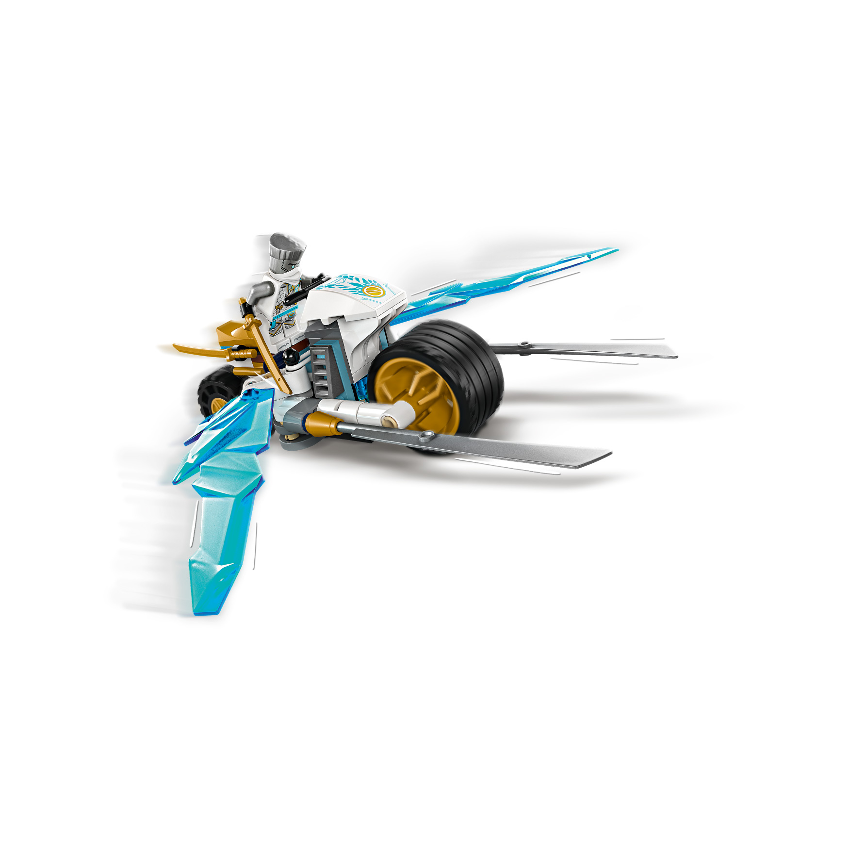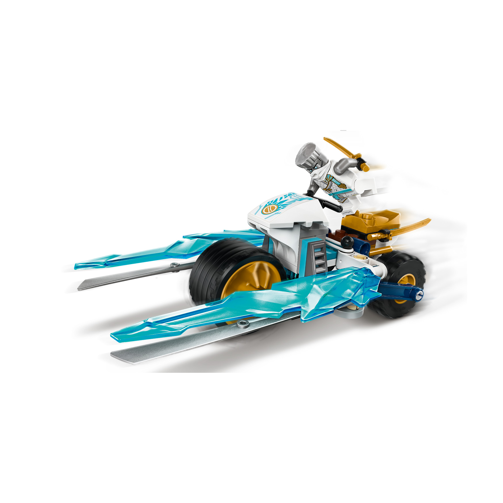 LEGO® NINJAGO® Zane’s Ice Motorcycle toy (71816) lets boys and girls aged 7+ recreate fast-paced action from season 2 of the NINJAGO Dragons Rising TV show. This ninja toy for kids includes a NINJAGO motorcycle with moving wheels, golden blades and suspension on the back tire. When kids press down on the tire, cool attack-mode ice blades fold out on both sides.