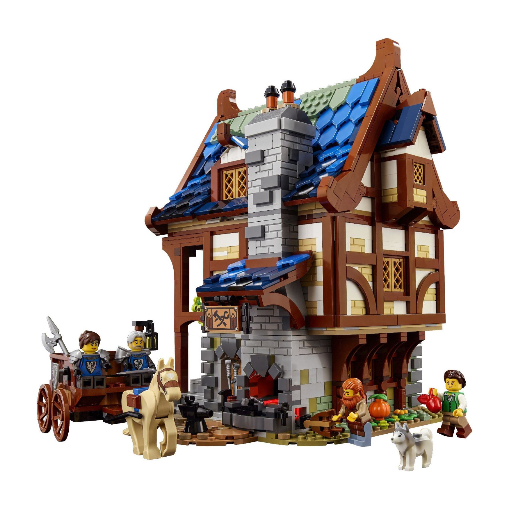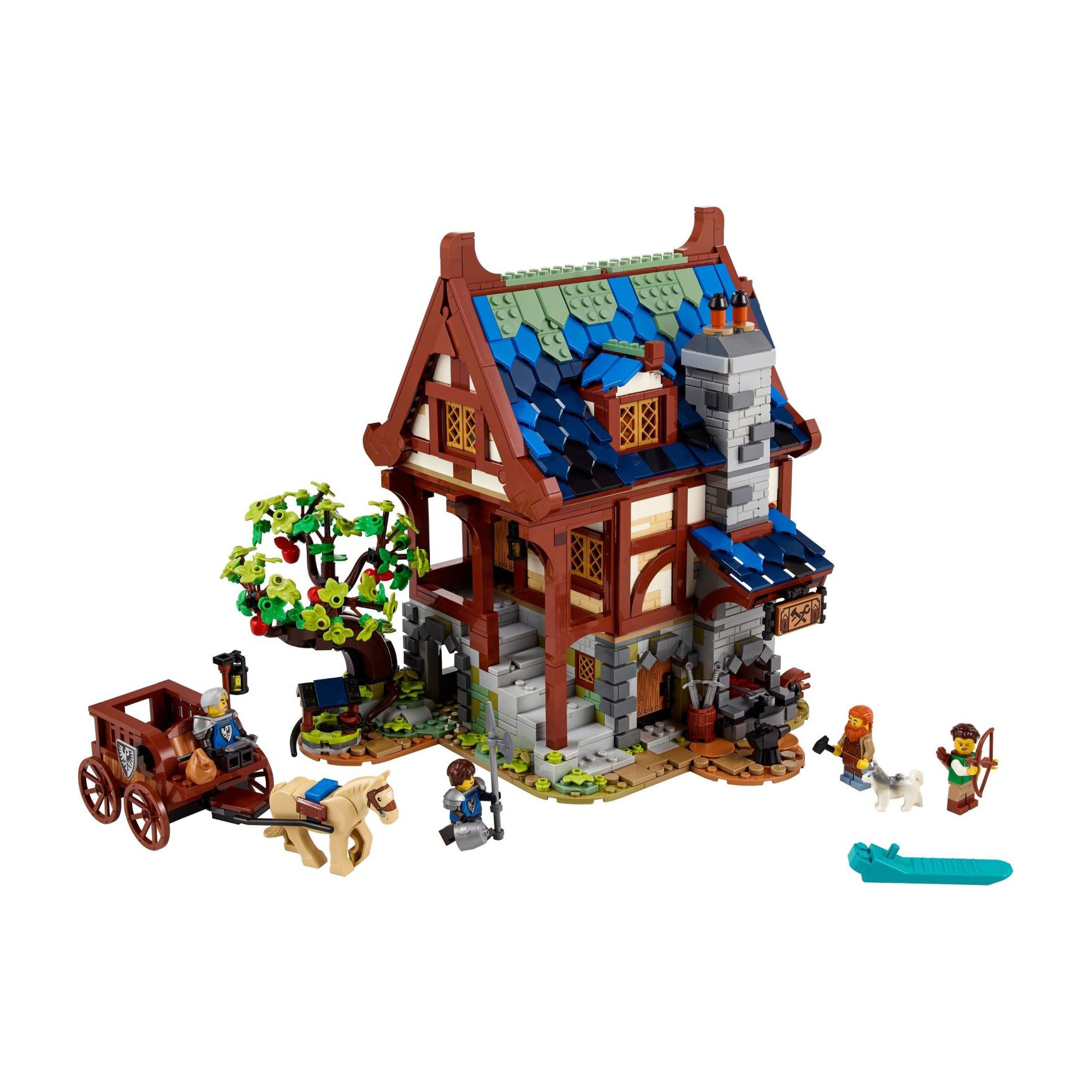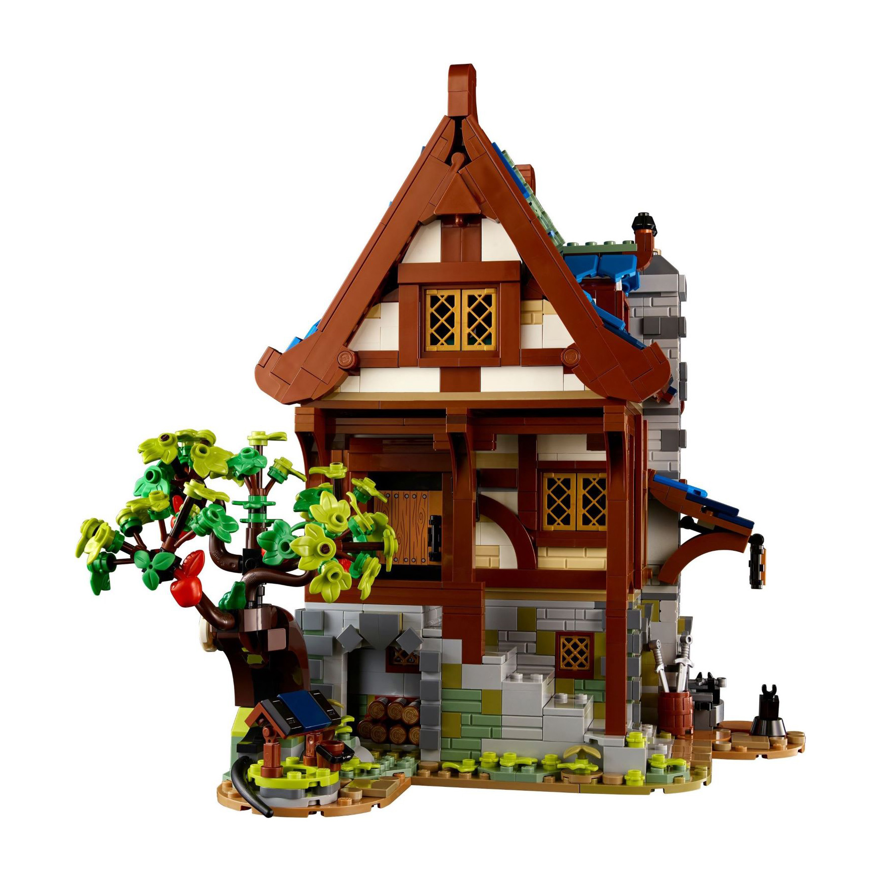 Take a break from everyday life while building the LEGO® Ideas Model “Medieval Forge”. The architectural details of this 3-storey building from the Middle Ages have been recreated in the loving LEGO® way. The roof and the upper 2 floors can be removed so that the fully equipped bedroom, the kitchen and the workshop, which is equipped with authentic objects from the Middle Ages, can be easily viewed. Other features include a glowing forging stove with a LEGO light brick and a garden with buildable models of an apple tree and a fountain.