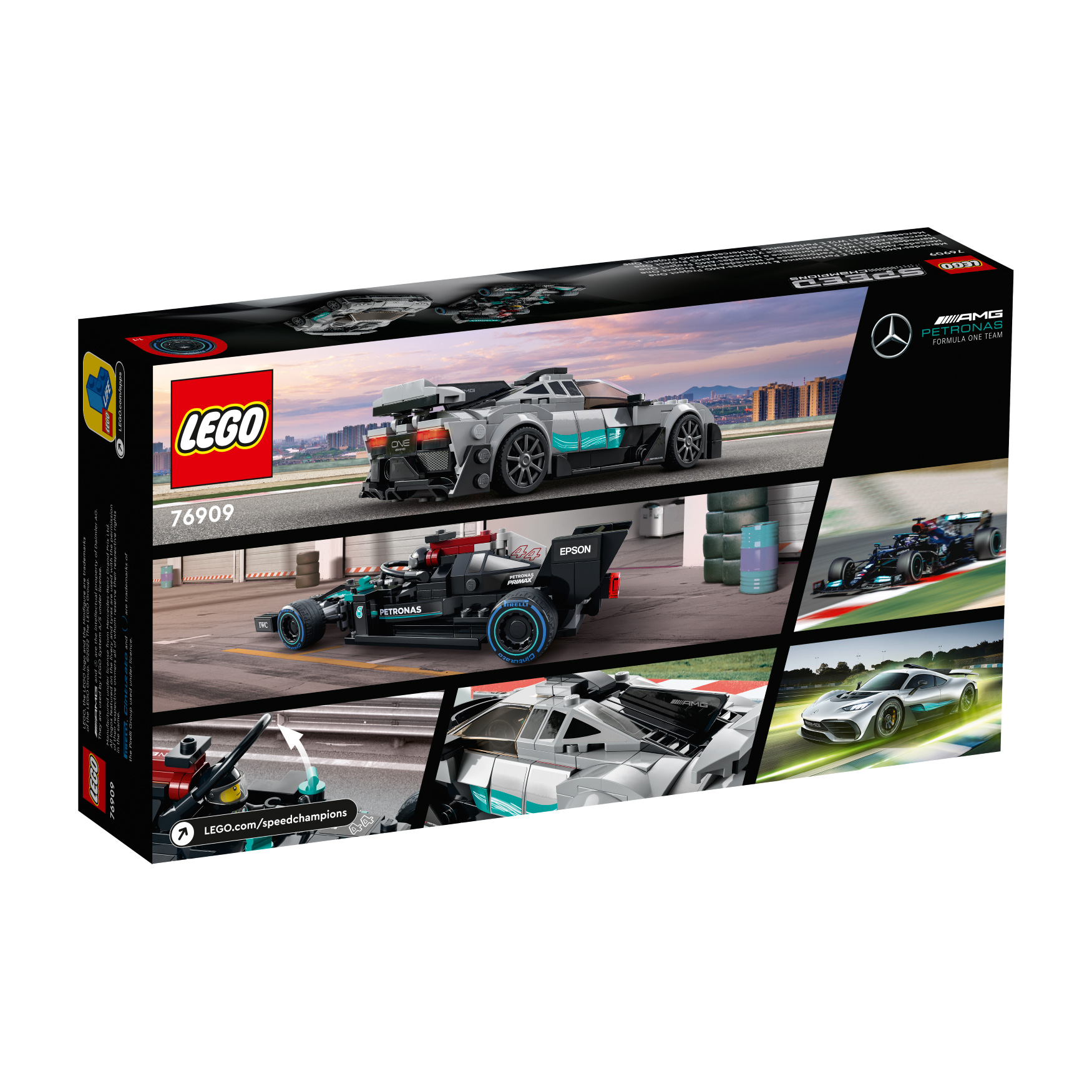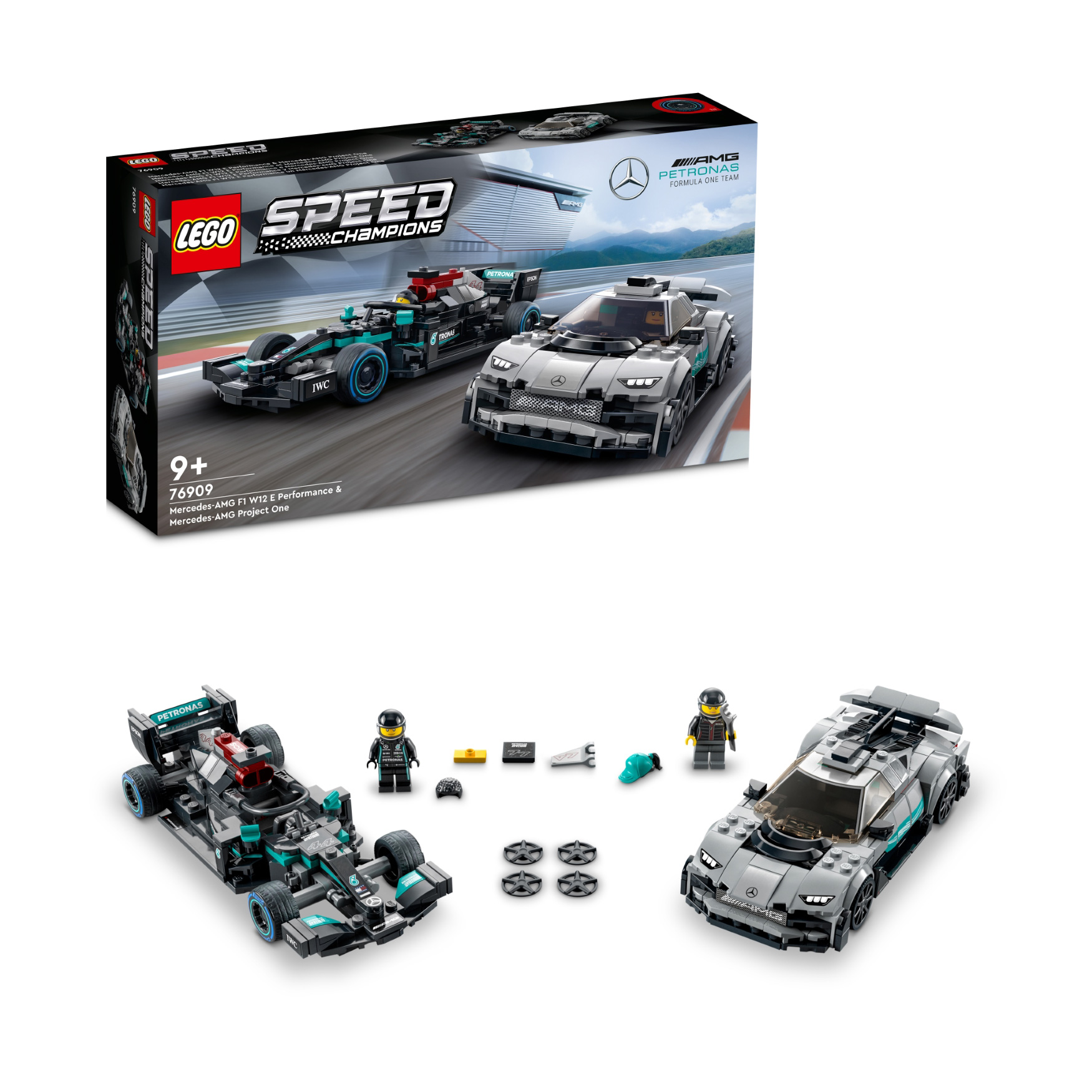 With the LEGO® Speed Champions construction set “Mercedes-AMG F1 W12 E Performance & Mercedes-AMG Project One” (76909), children and motorsport fans can now collect and discover 2 absolute pioneers in racing car design. These toy cars for exhibiting are not only the dream of every collector, but also offer huge building and playing fun. LEGO® Speed Champions building sets contain authentic replicas of the world’s most famous and best vehicles. These models for exhibiting and collecting are also suitable for exciting races with other Speed Champions speedsters.