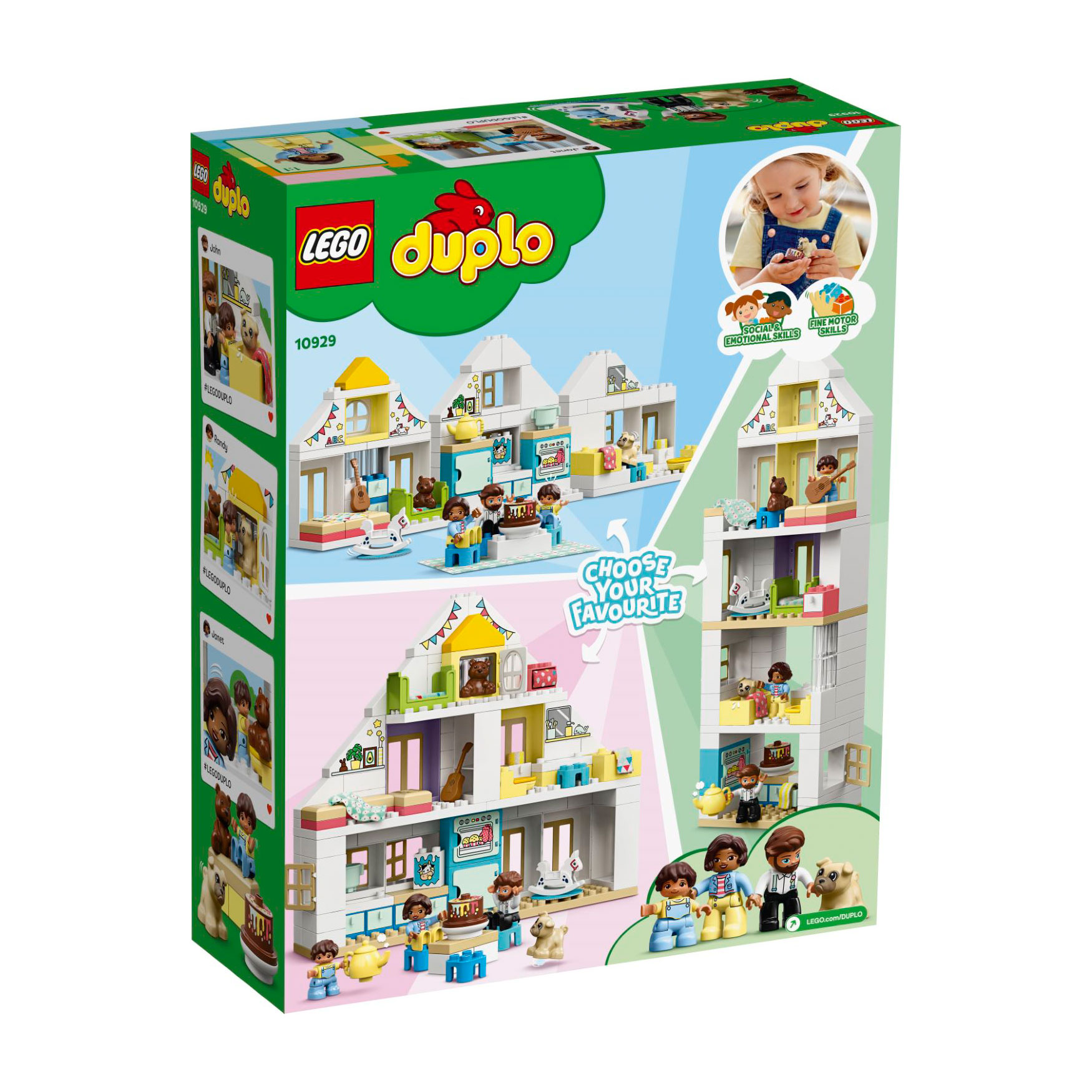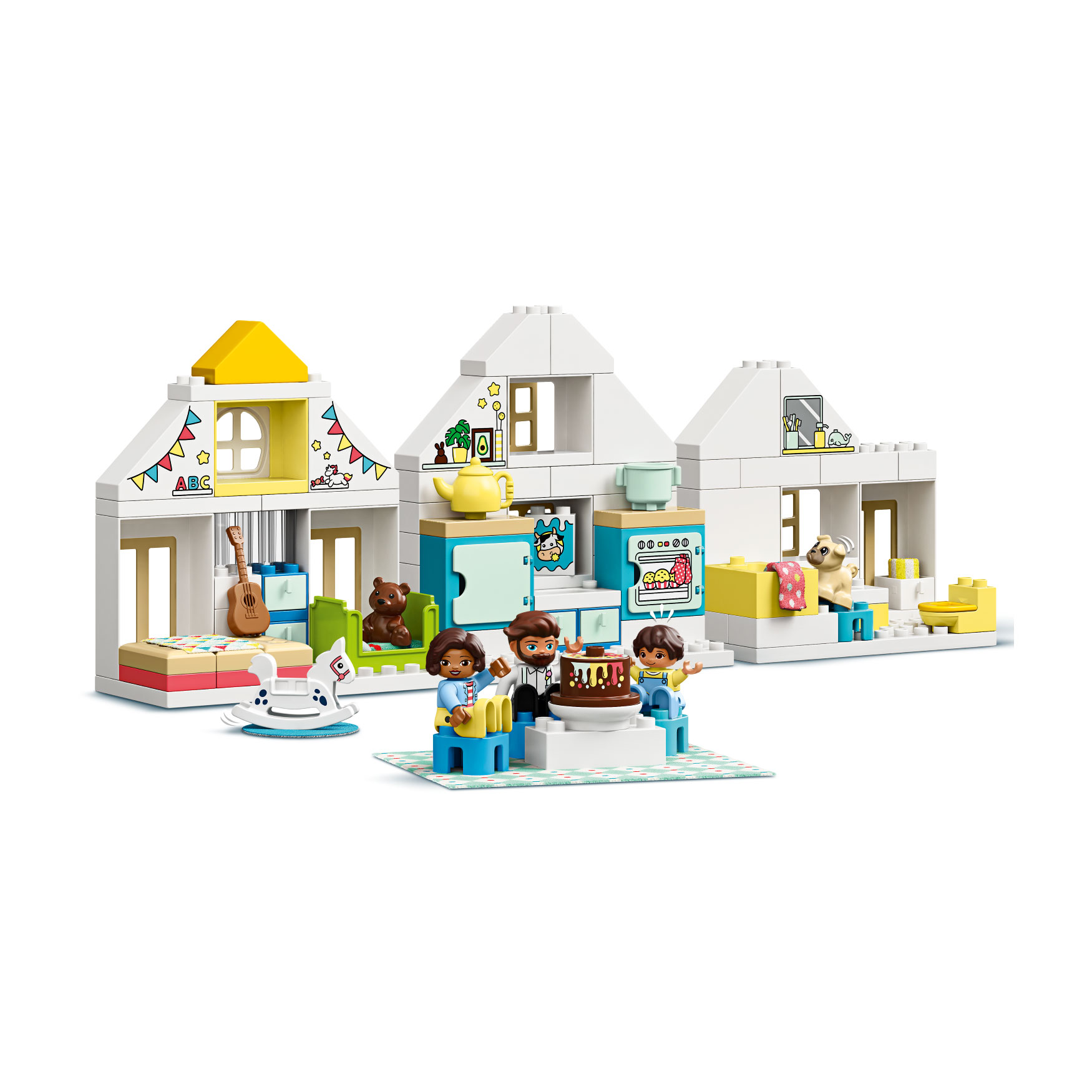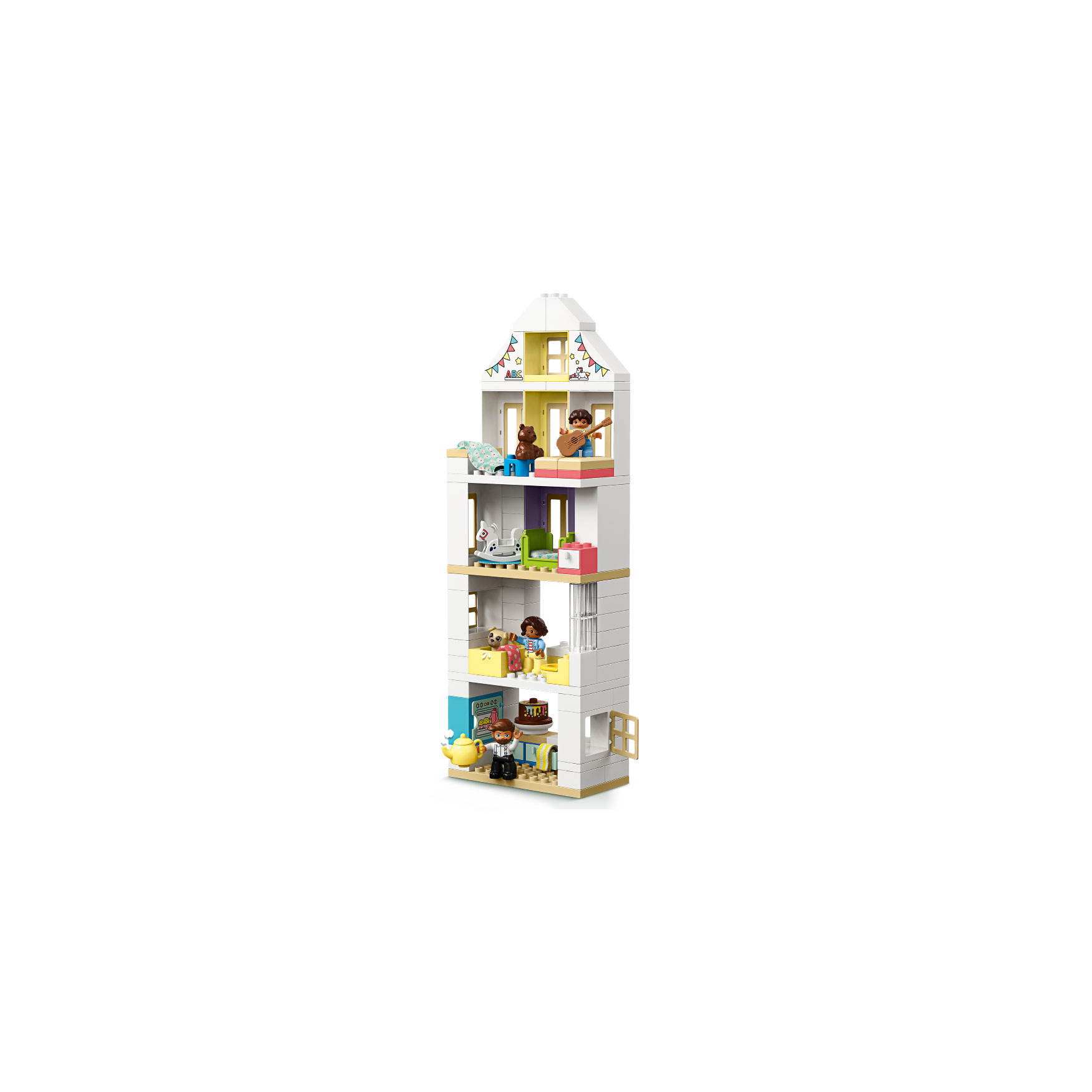 Kids love to play house! And, with this easy-to-build, open and accessible dollhouse, you can join in the fun too! Big family dollhouse playset This colorful, contemporary dollhouse for toddlers provides many opportunities to play and learn. Teach toddlers about everyday life, such as cooking, mealtime and bedtime routines as you both share imaginative role-play fun. There’s adult male, adult female, and child figures, plus a pet dog and a teddy bear – all designed to inspire a comforting emotional attachment in toddlers. Filled with familiar details and infinite fun, you’ll share endless precious developmental moments as you explore play possibilities together. For even more fun, you can rebuild the same pieces as a tower house, and then again as a residential house! Great educational toy for toddlers With recognizable characters and familiar scenes, LEGO® DUPLO® learning toys give kids hands-on, open-ended, role-play fun with endless developmental benefits.