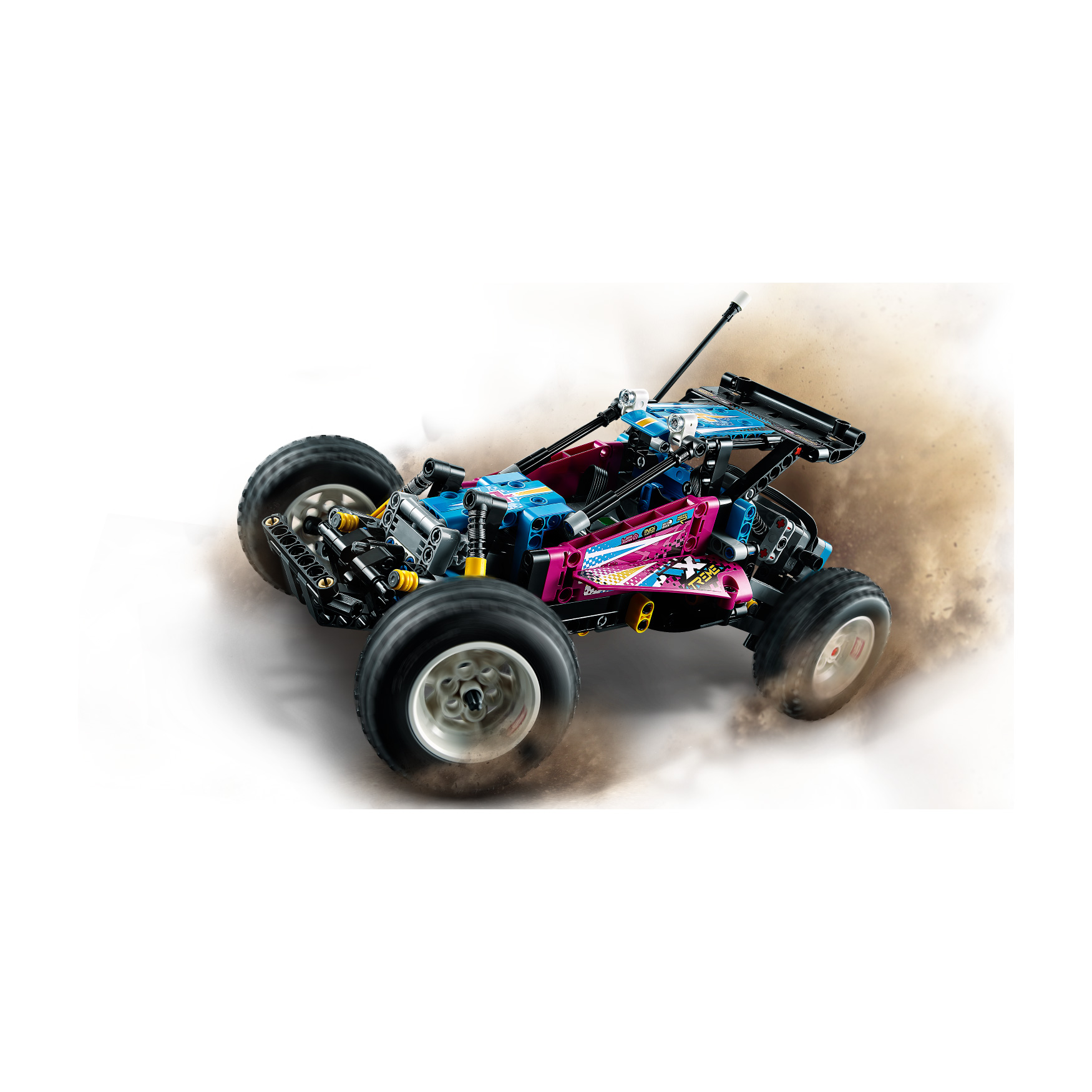 This LEGO® Technic off-road vehicle has it all: great tricks, strong jumps and breathtaking stunts. The coarse tires and the front and rear suspension allow for huge action fun with this remote-controlled car. Marvel at the hinged bonnet, antenna and retro stickers. Then use the CONTROL+ app to take on challenges, create sound effects and let your remote-controlled buggy whizz off.