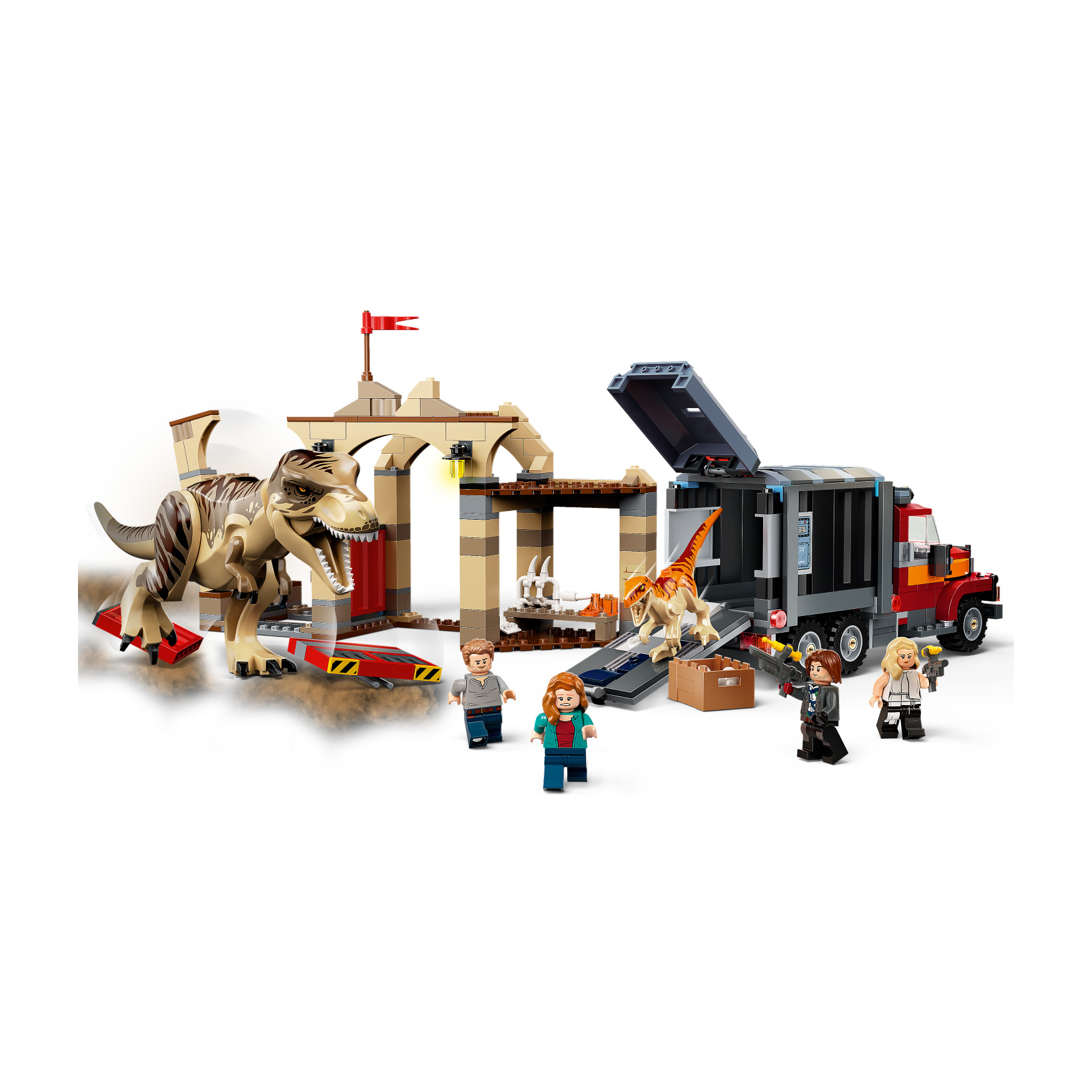 Fans can reimagine thrilling action from the Jurassic World: Dominion movie with this T. rex & Atrociraptor Dinosaur Breakout (76948) toy playset. An awesome gift for trendsetting kids aged 8 and up, it features a buildable market and big rig truck toy, plus Atrociraptor and T. rex figures. The market has a T. rex enclosure with a breakout function, and the truck has room for 2 Atrociraptors (Find another Atrociraptor in the 76945 set).